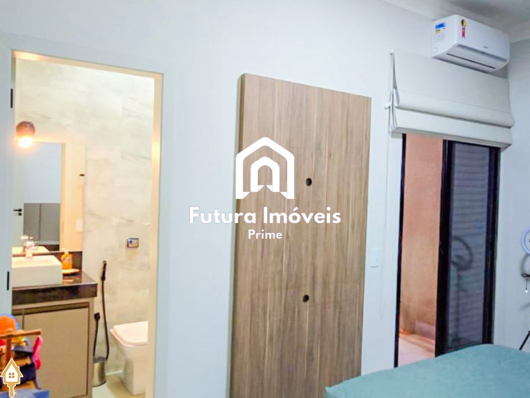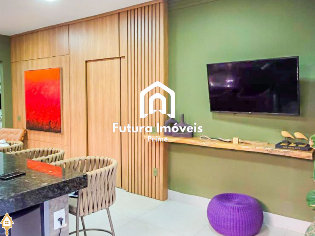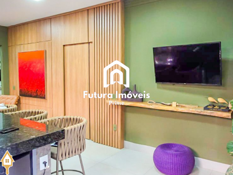 Sala de tv com salva de jantar com lustre ar condIicionado e cortina