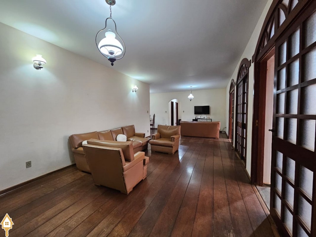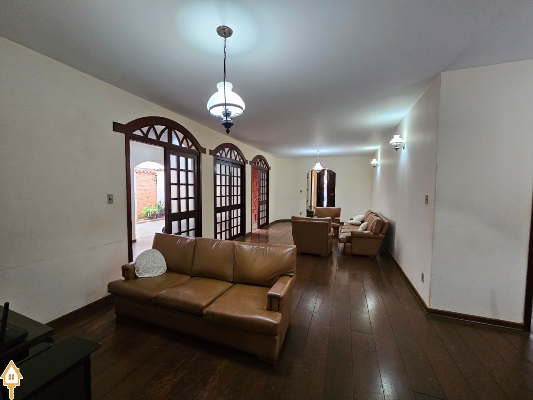Casa composta de sala ampla para 2 ambientes, lavabo, 3 quartos sendo 1 suíte com armário planejado de madeira, banheiro social, cozinha com armários, varandas, garagem fechada para 4 veículos, quintal, área de serviço, jardins.