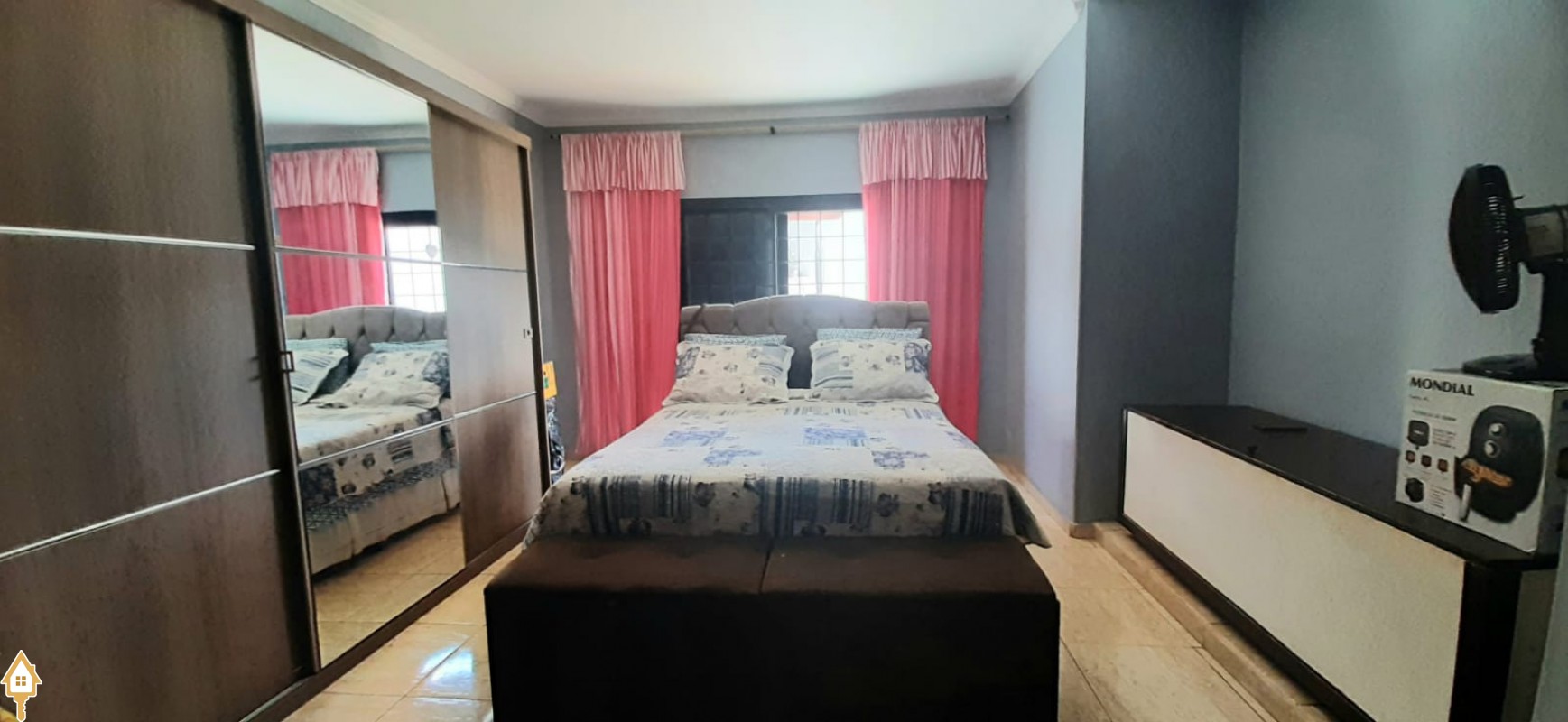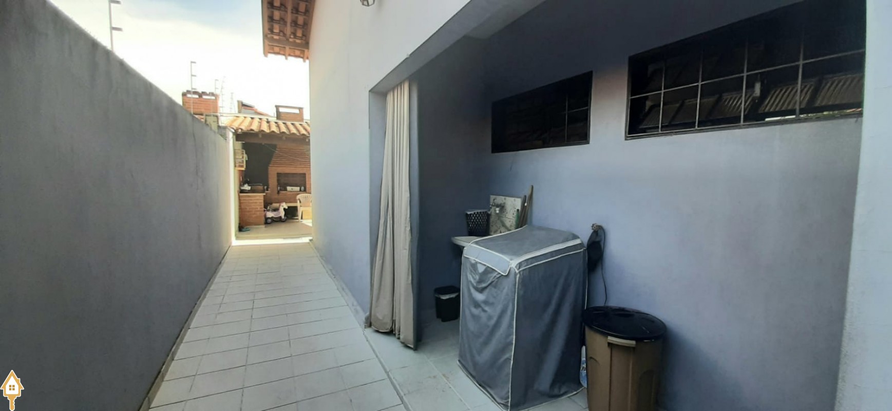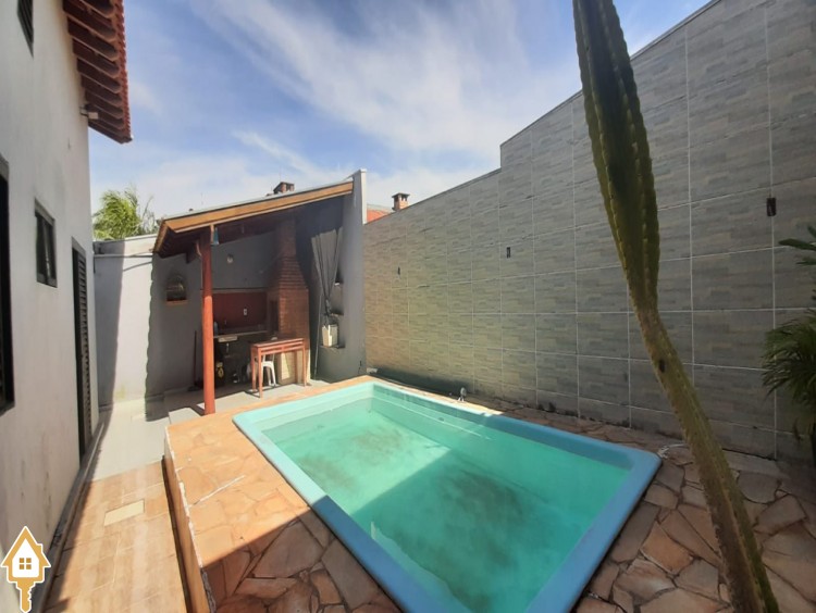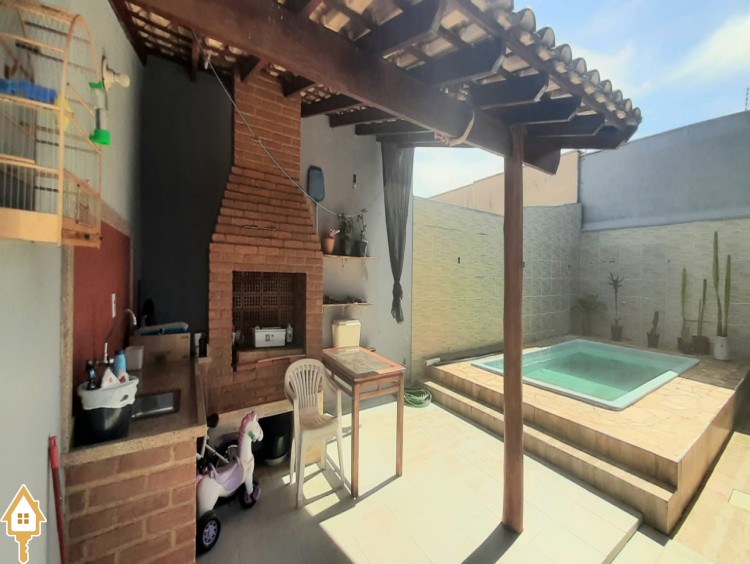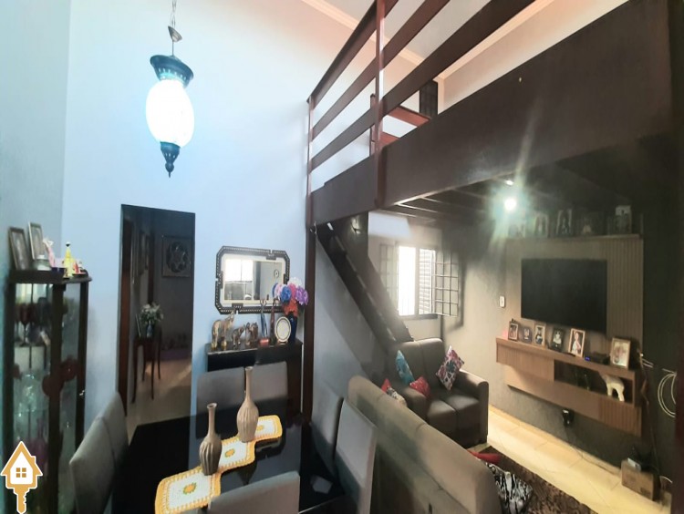 Composta de 2 salas amplas e confortáveis, copa, mezanino, lavabo, 3 quartos amplos, sendo 2 suítes, banheiro social, banheiro social, cozinha planejada, área de serviço externa, lazer com varanda gourmet com churrasqueira e piscina, despensa, garagem para 4 veículos, sendo 2 cobertos, jardins.
