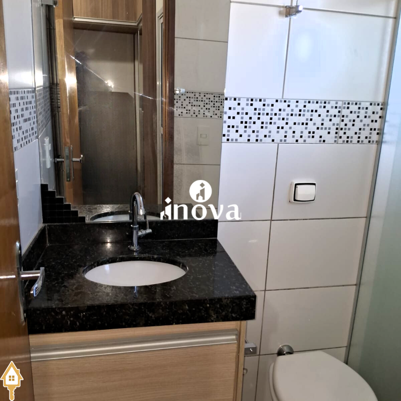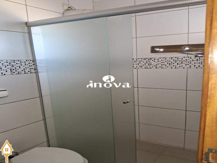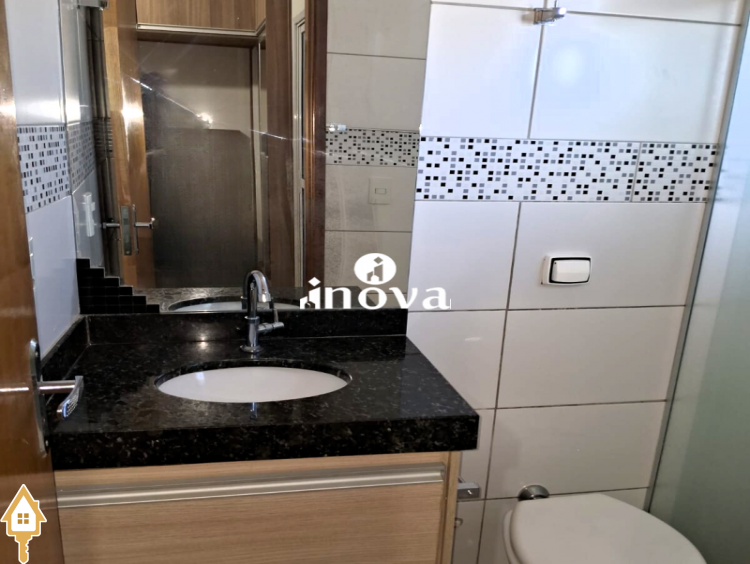 - Banheiro social com box, chuveiro, espelho e armário;