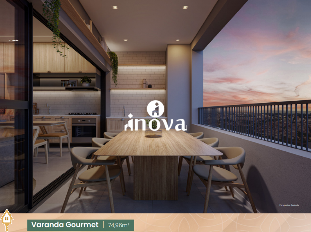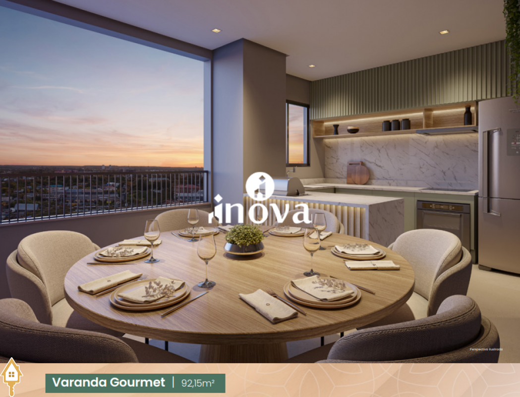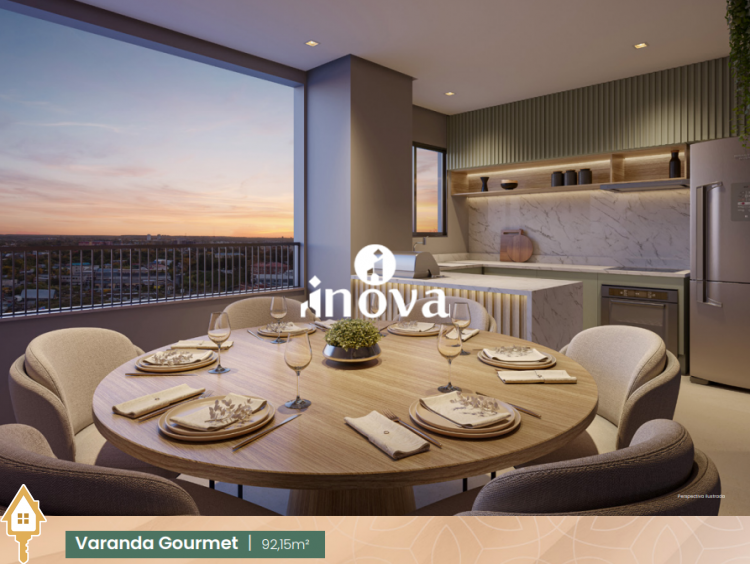 - 02 Suítes, sala integrada com a varanda gourmet, lavabo, lavanderia com 02 vagas;