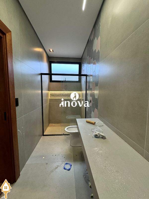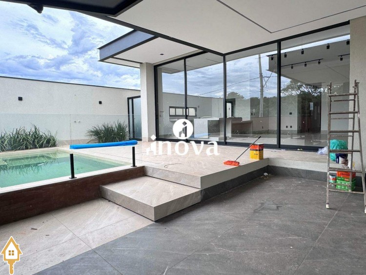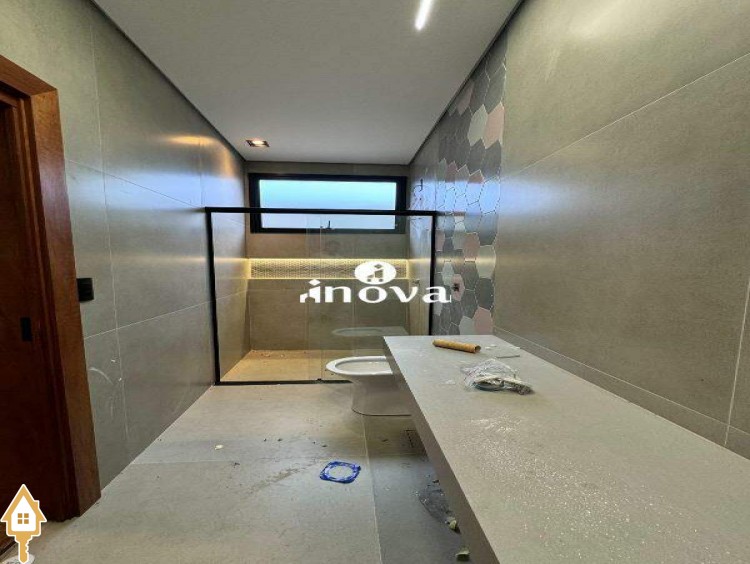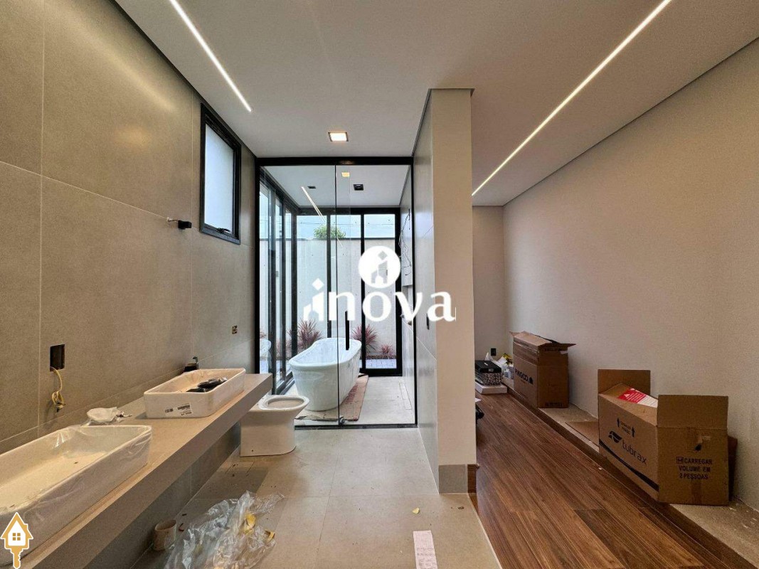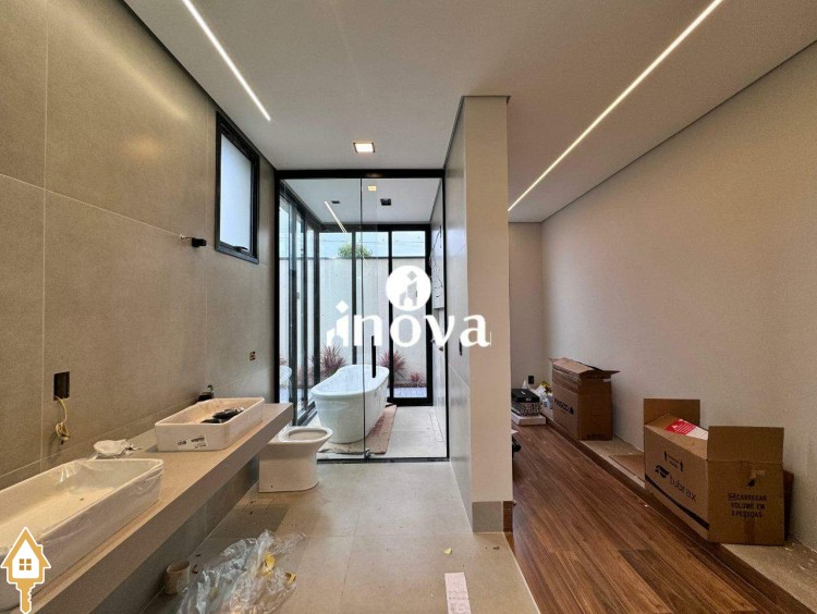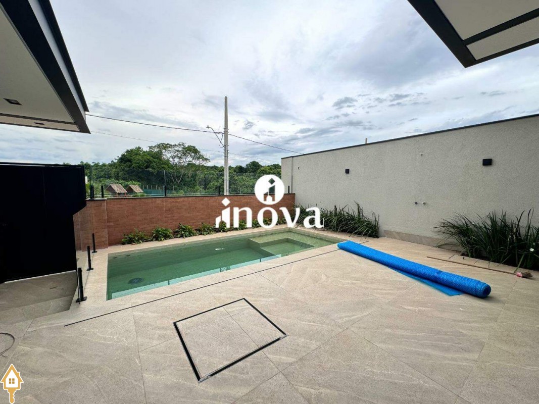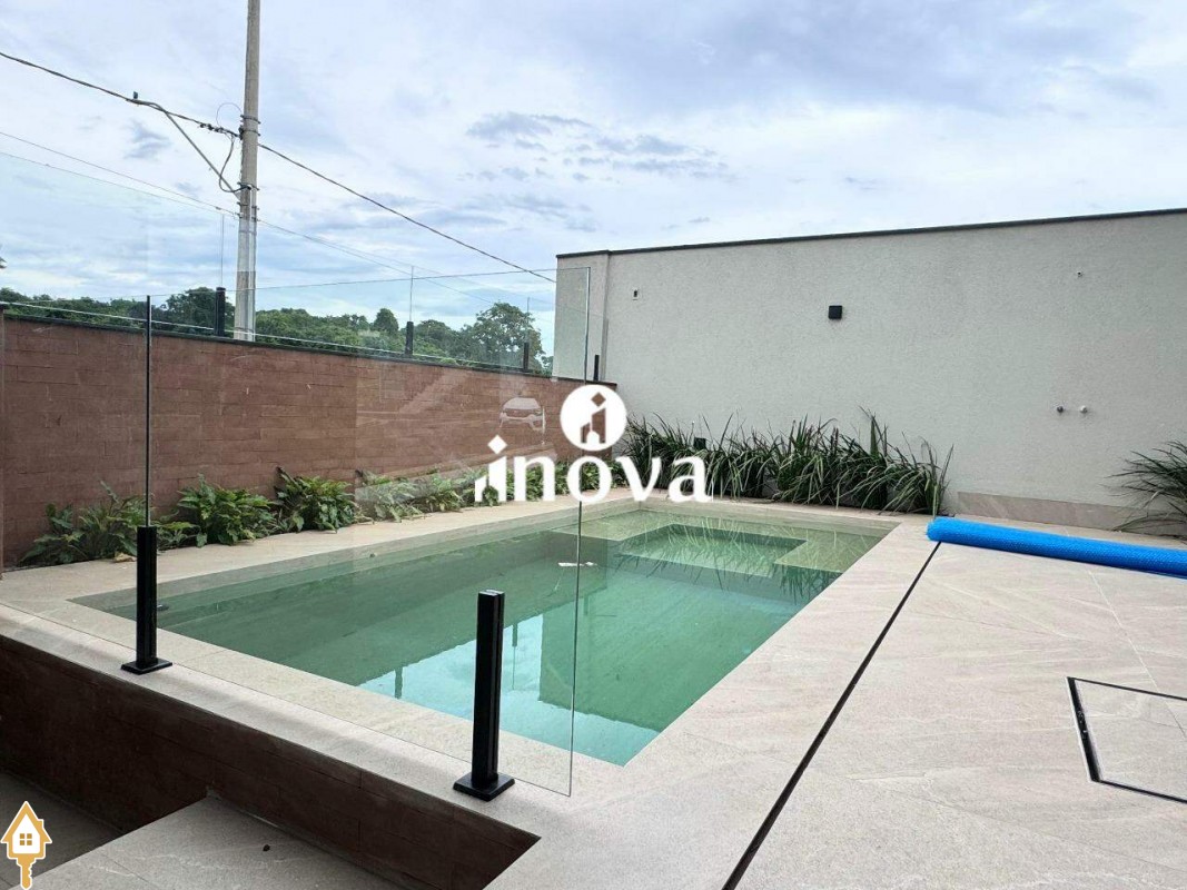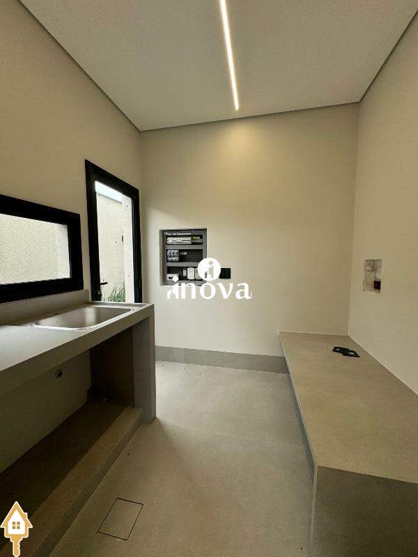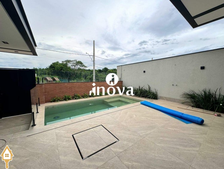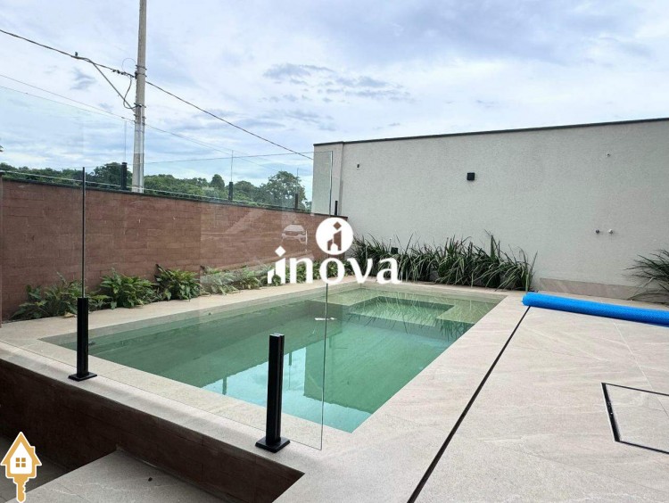 Imóvel de alto padrão oferece um acabamento impecável, com bancadas modernas e finíssimo acabamento, área de lazer com vista privilegiada, além de aquecimento solar e iluminação automatizada por voz. A casa conta com um luminotécnico de alto padrão e infraestrutura completa para automação, incluindo aquecimento solar para todas as torneiras e chuveiros. O paisagismo exclusivo complementa o ambiente, enquanto as esquadrias de alumínio preto, com persianas elétricas automatizadas, garantem elegância e conforto. Com portas internas de madeira e tomada para carro elétrico, a fachada norte foi projetada para otimizar a ventilação interna, oferecendo ainda uma ducha aquecida.