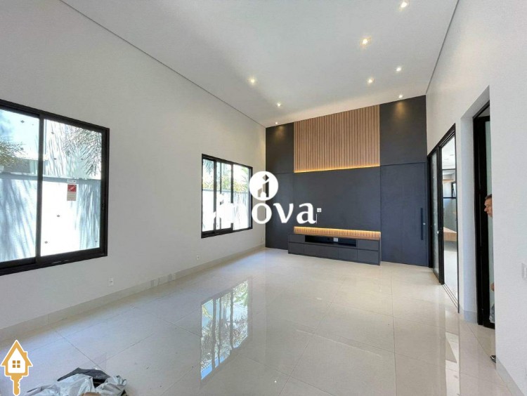 - Sala ampla para dois ambientes com pé direito alto, iluminação em LED e painel de TV;
