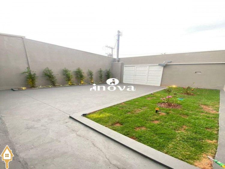 Casa com portão eletrônico, interfone e jardim automatizado, iluminação em led, armários planejados em madeira maciça na cozinha e quarto.