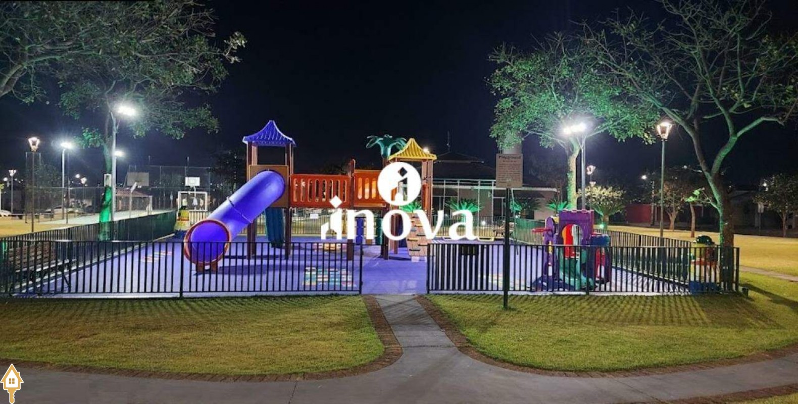 Condomínio com portaria 24 horas, quadra poliesportiva, minimercado, salão de festas, campo de futebol e playground.