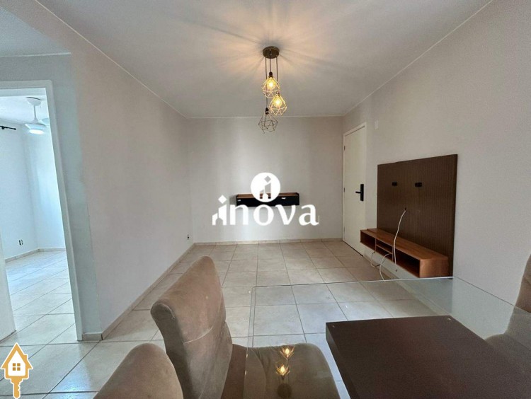 - Sala para dois ambientes com painel de TV, aparador e mesa;