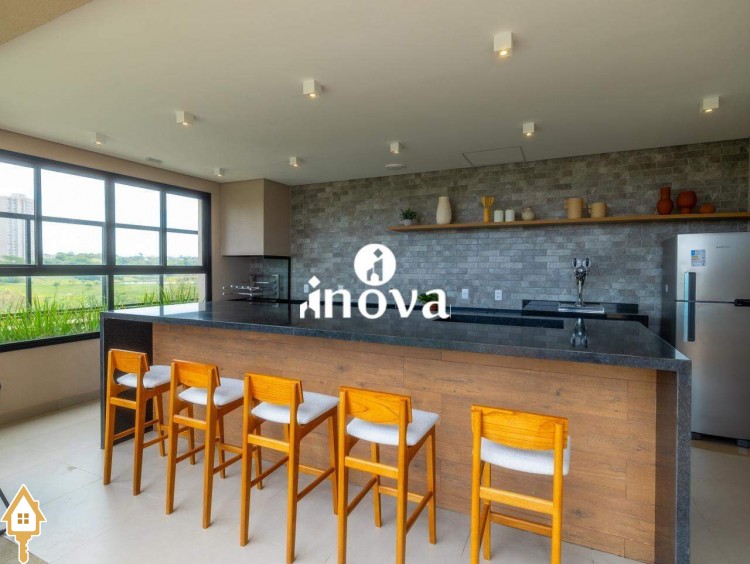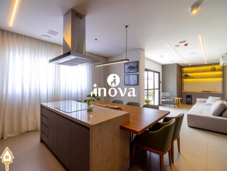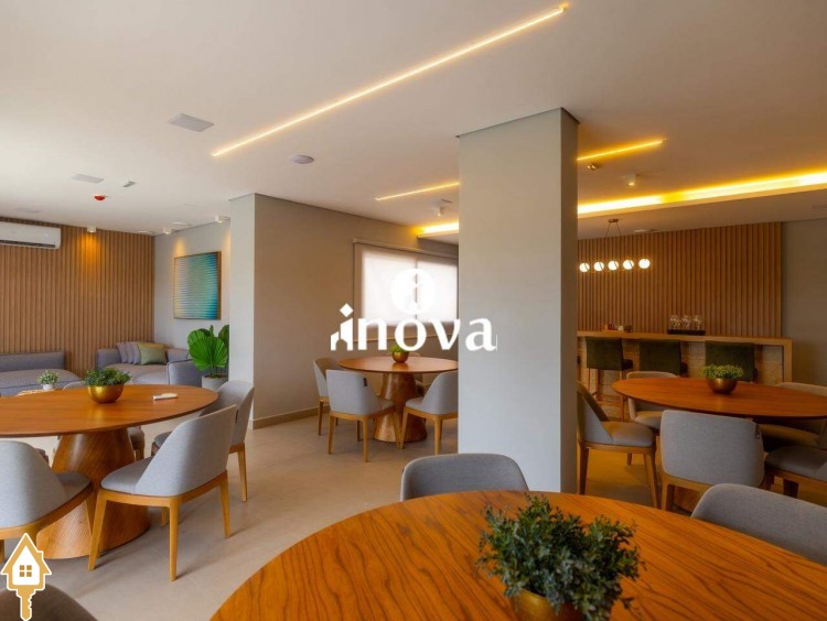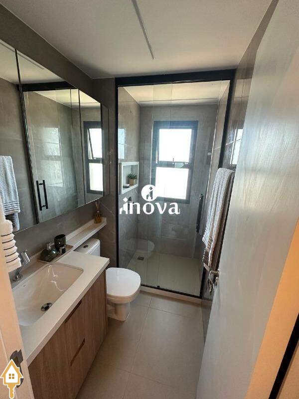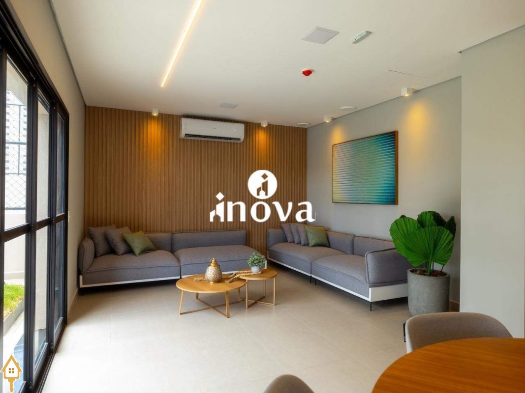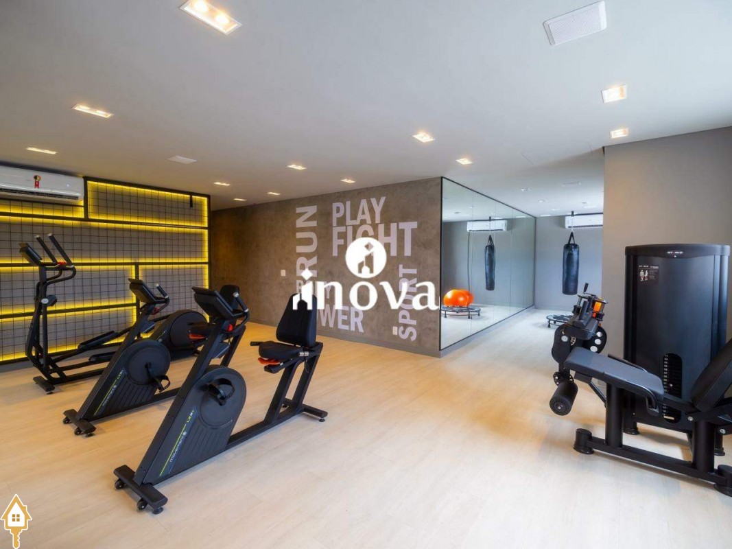 Prédio com elevador, piscina, espaço gourmet, academia, quadra, playground e área para pets.
