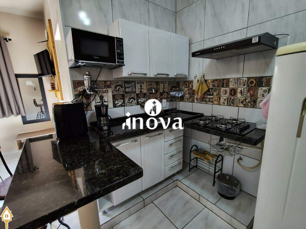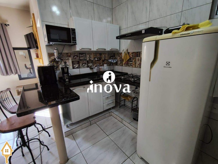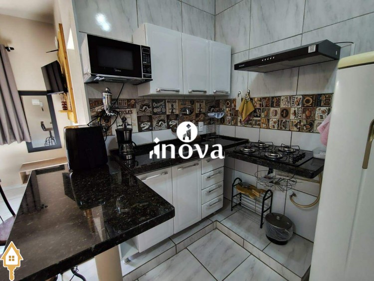 - Cozinha com fogão, sugar, armário, microondas, airfryer;