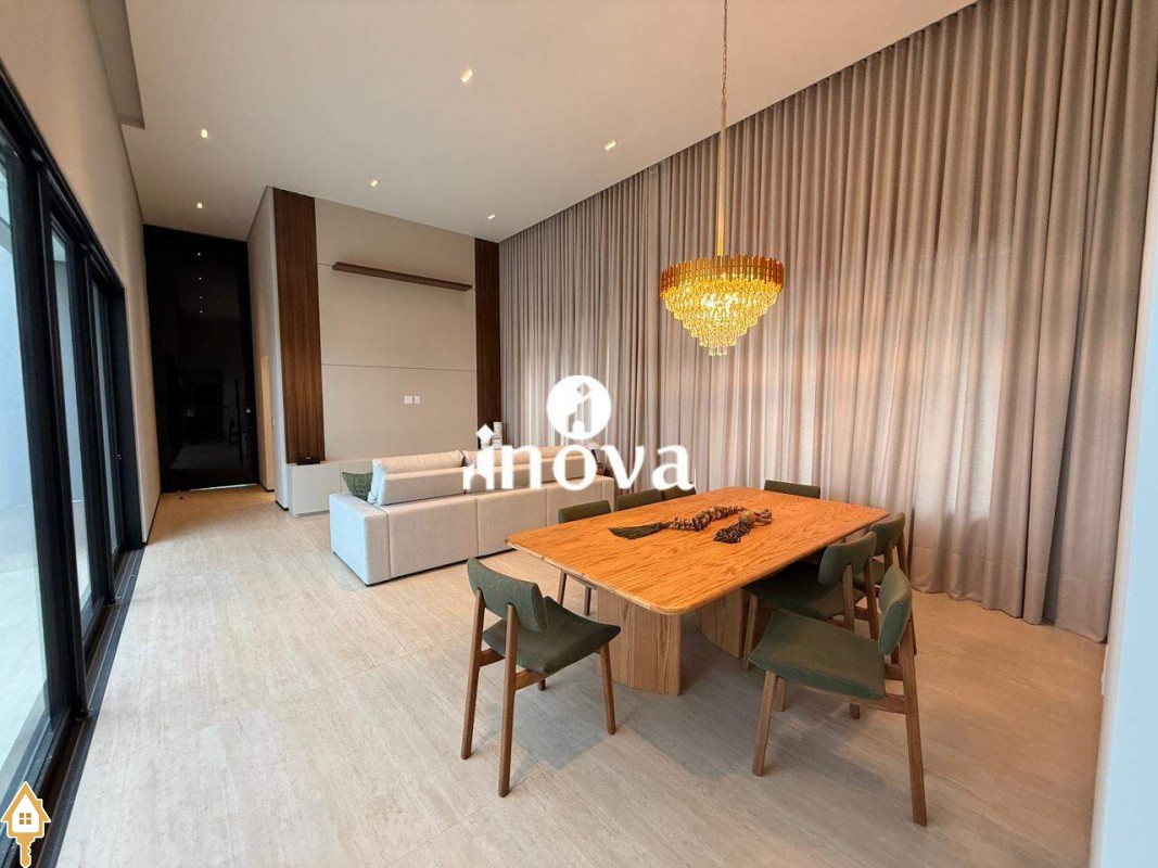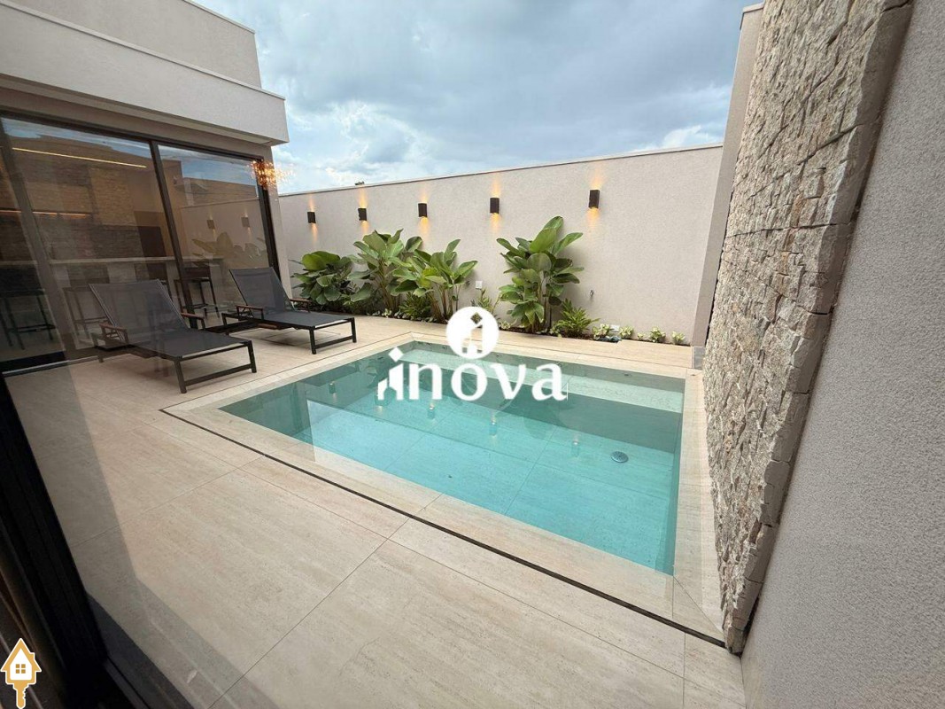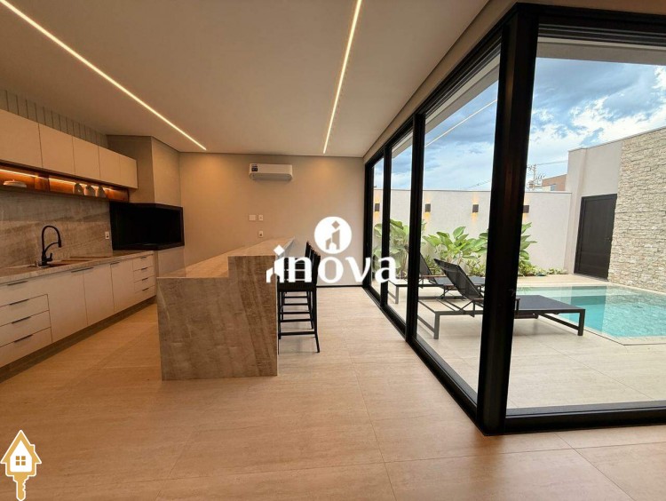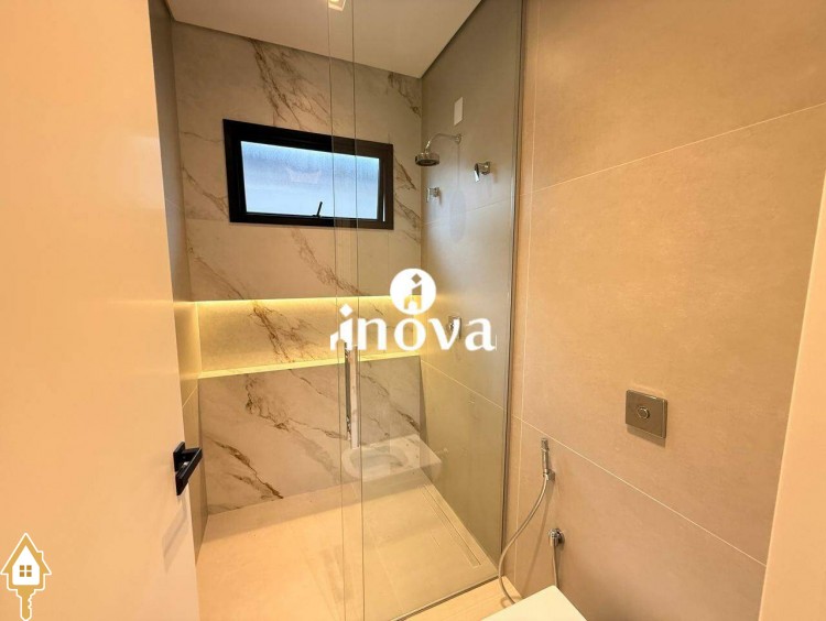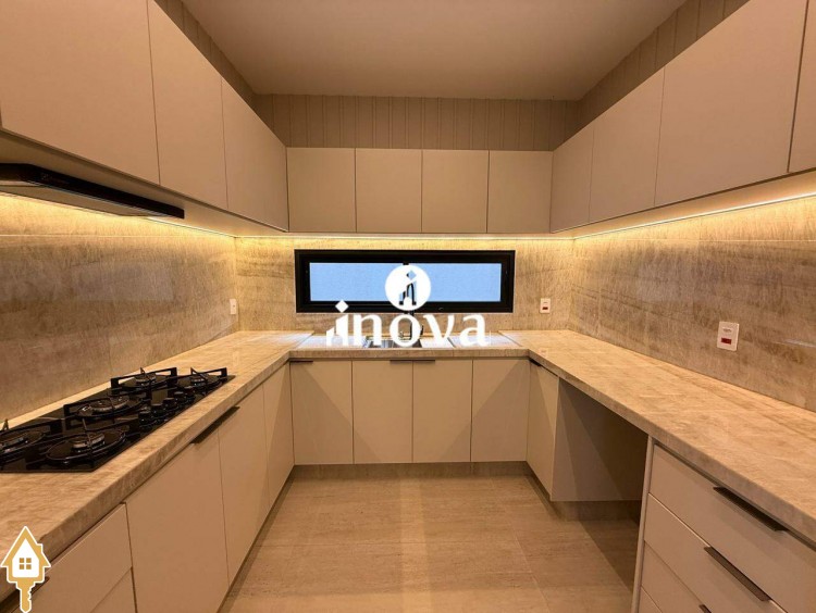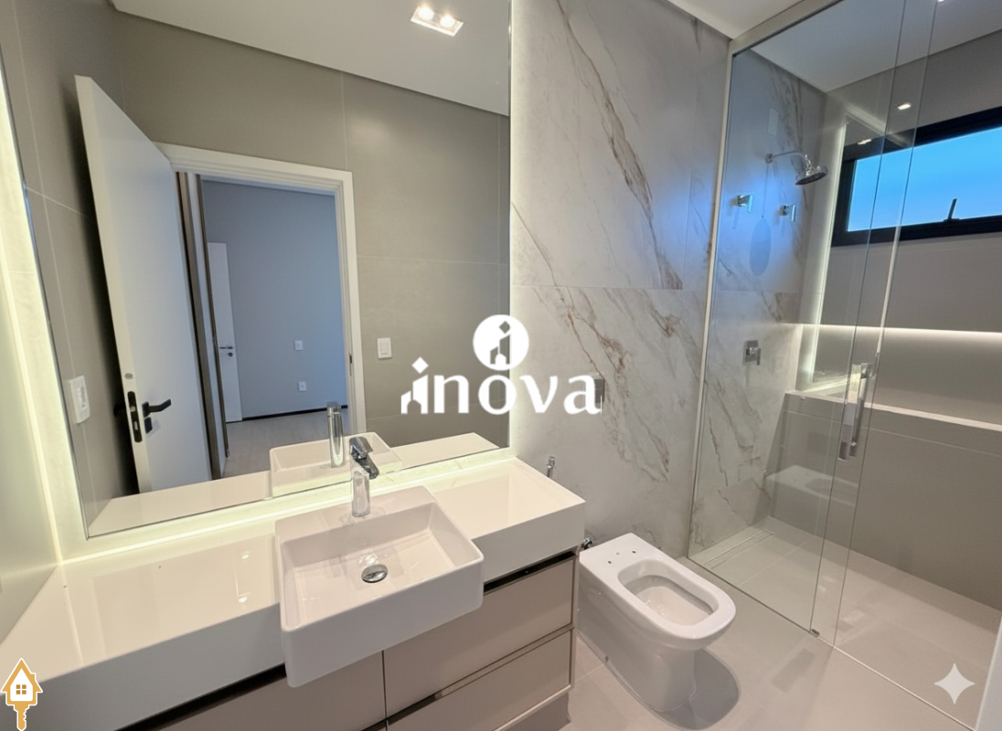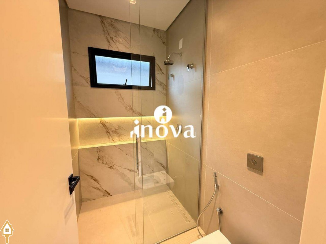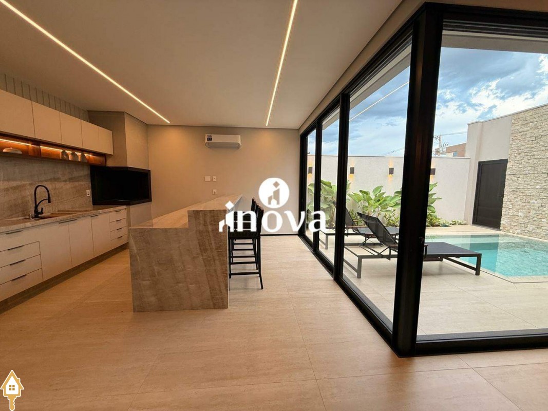 Casa como Iluminação em led, sistema de aquecimento solar com boiler de 800 litros, esquadrias de alumínio com portas com persianas automáticas nas suítes , ar condicionado (nas suítes, escritório, sala de jantar e estar e área gourmet), móveis planejados, pisos e revestimentos de altão padrão, fachada em pedra Espanha, bancadas e balcões em quartzo Taj Mahal, lavatório em nano glass, metais e louças de alta qualidade.