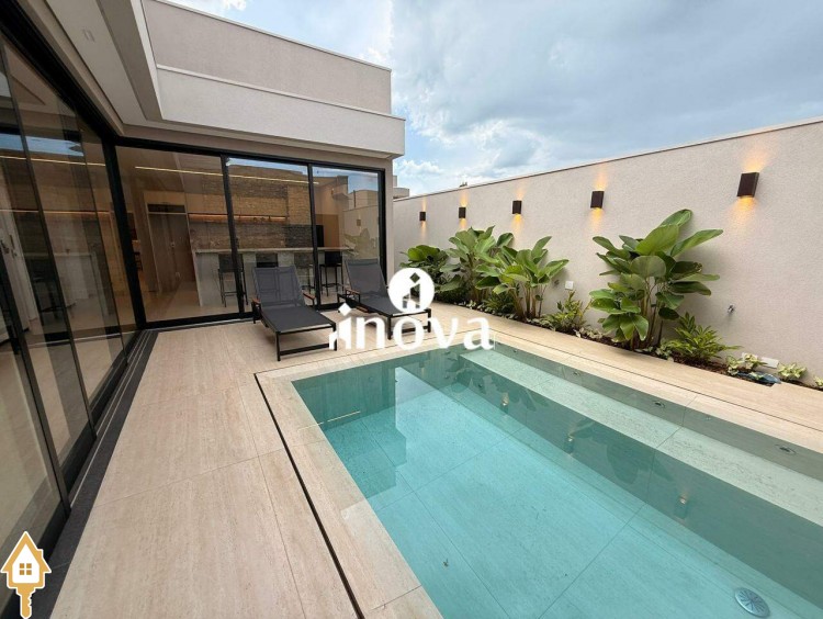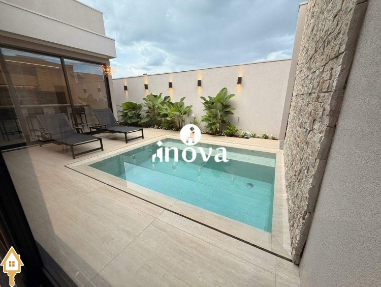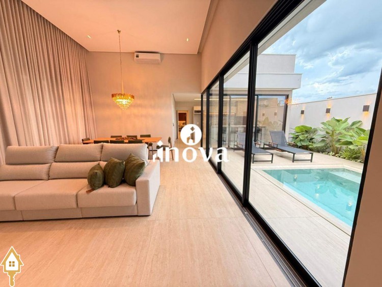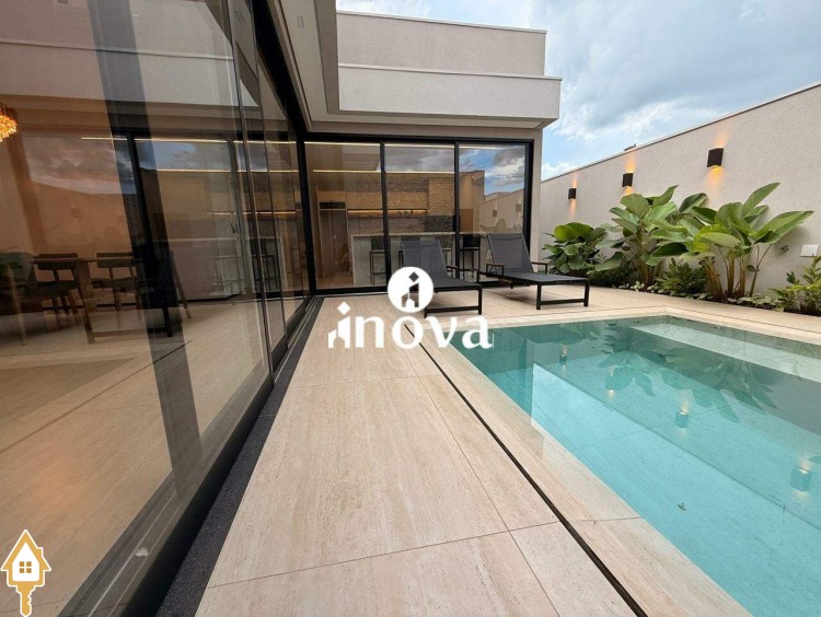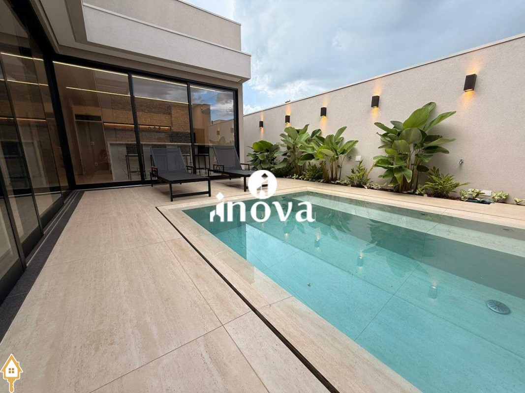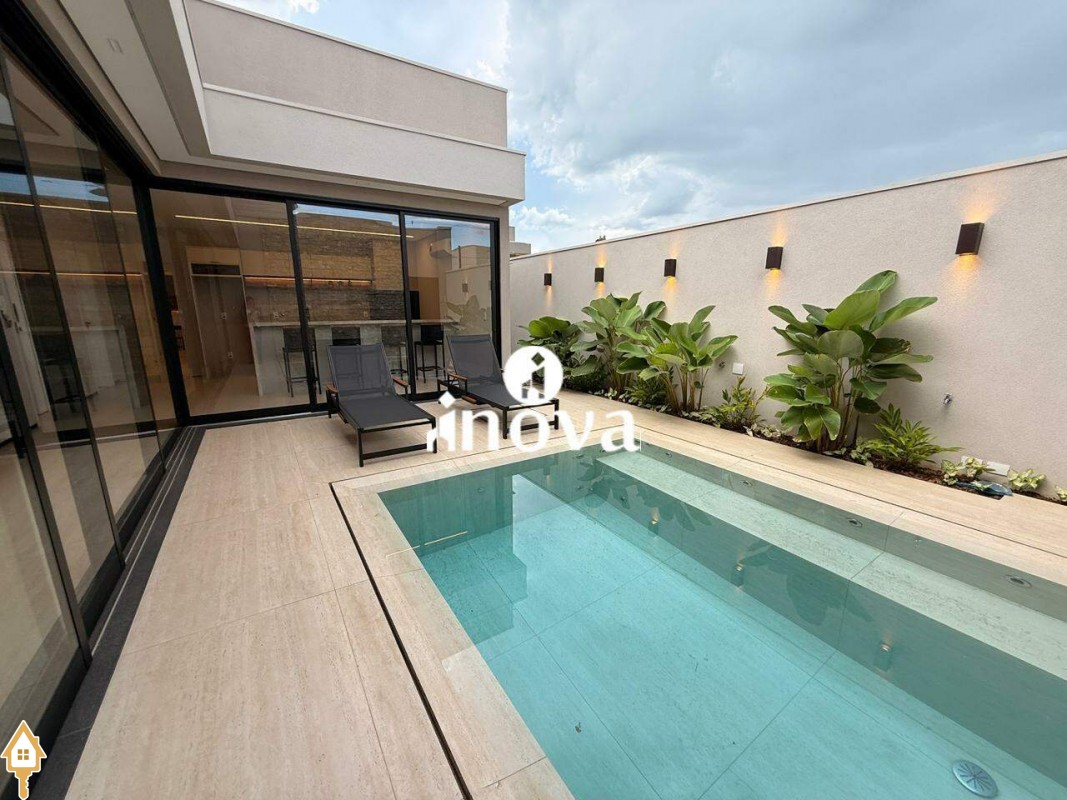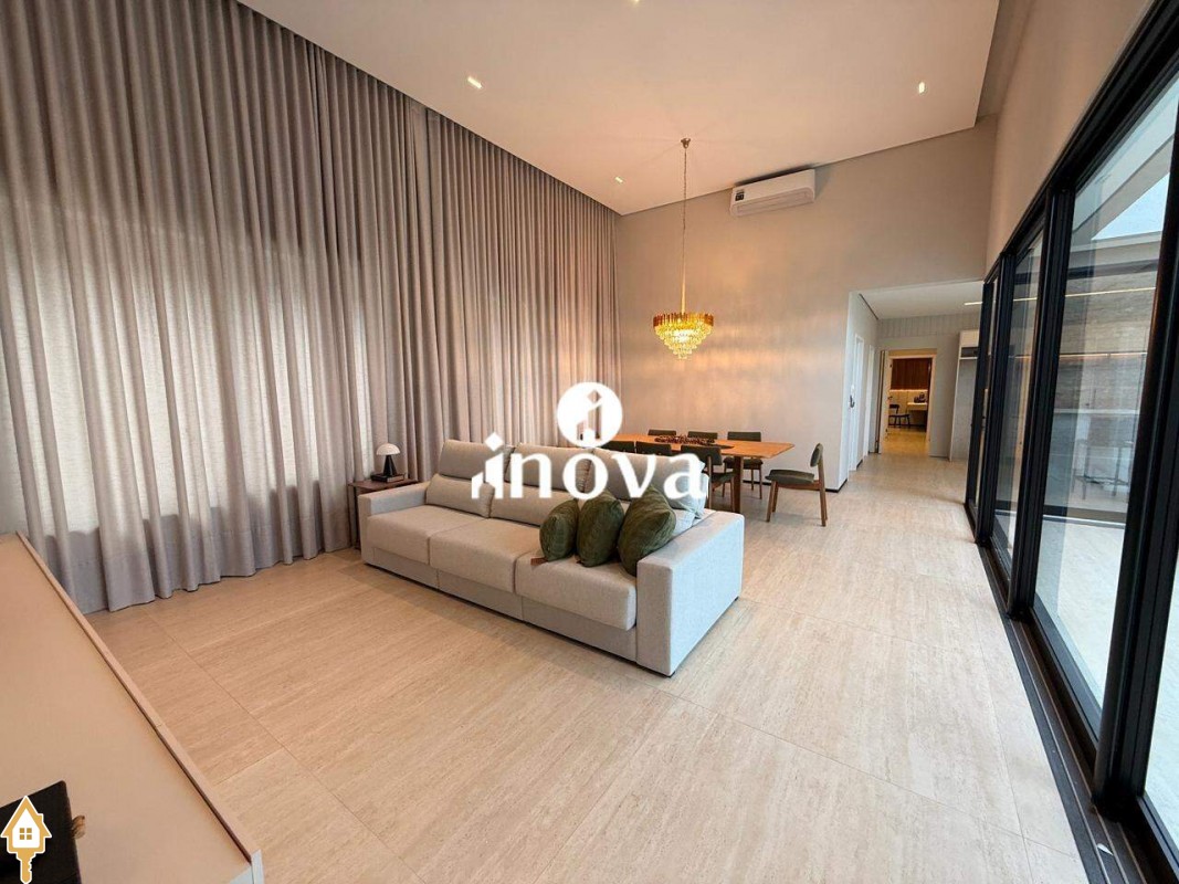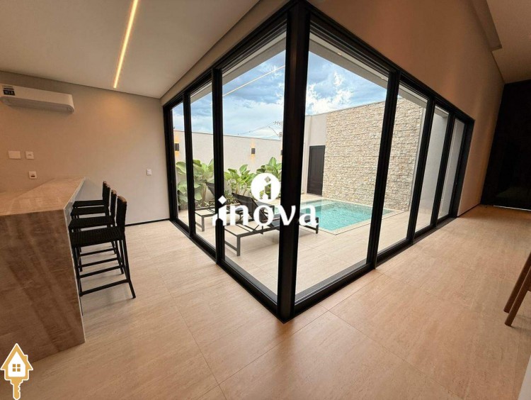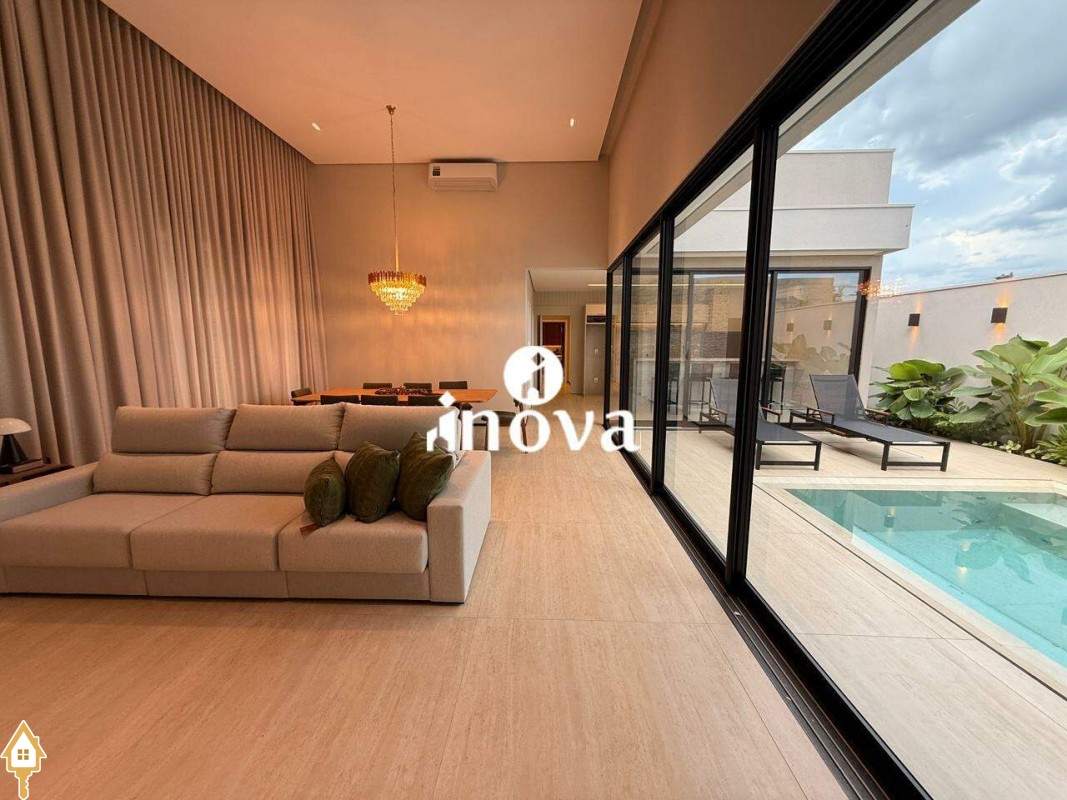 Casa como Iluminação em led, sistema de aquecimento solar com boiler de 800 litros, esquadrias de alumínio com portas com persianas automáticas nas suítes , ar condicionado (nas suítes, escritório, sala de jantar e estar e área gourmet), móveis planejados, pisos e revestimentos de altão padrão, fachada em pedra Espanha, bancadas e balcões em quartzo Taj Mahal, lavatório em nano glass, metais e louças de alta qualidade.