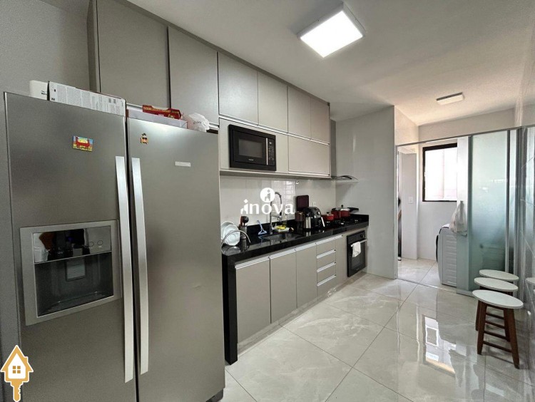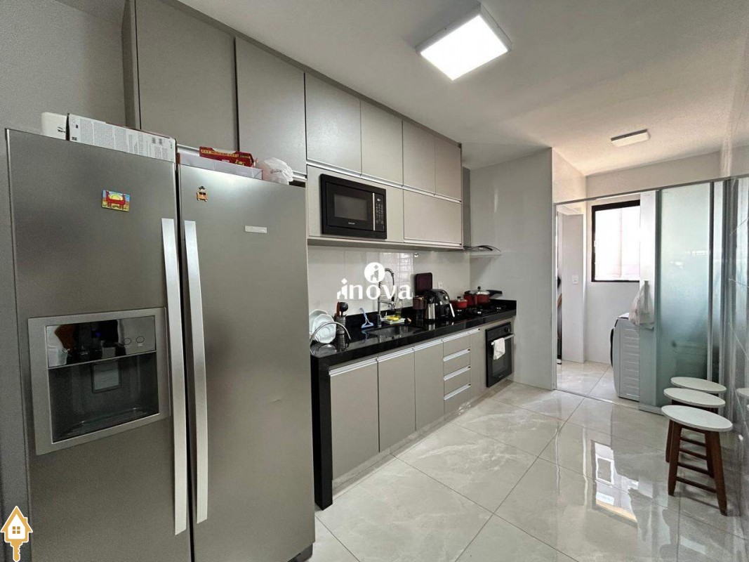 - Cozinha com armários, cooktop, coifa e forno;