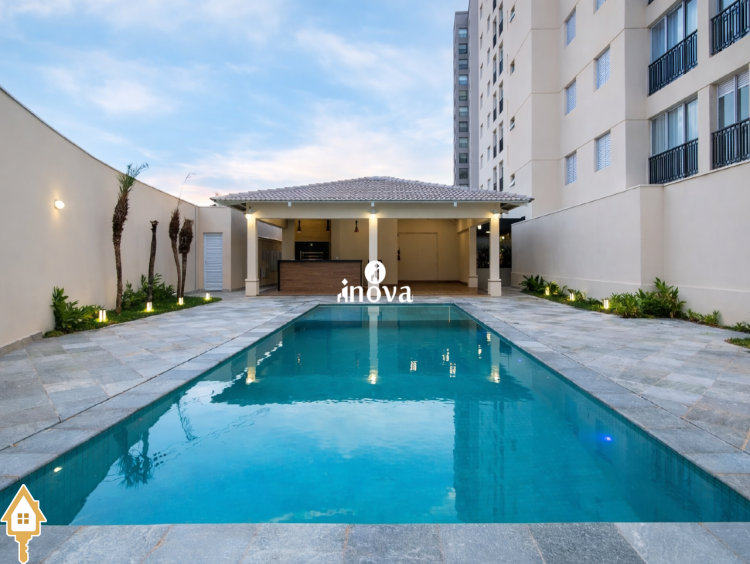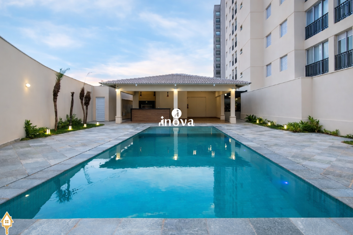 Condomínio com portaria 24 horas, elevador, água, gás, área de lazer completa com piscina, sauna, playground e churrasqueira.