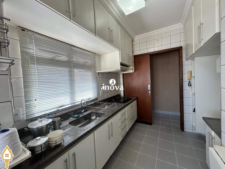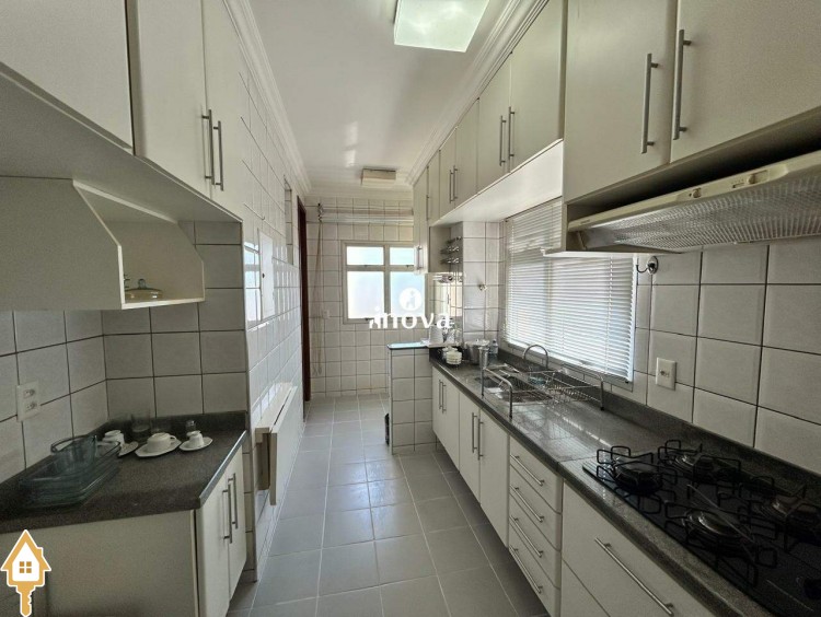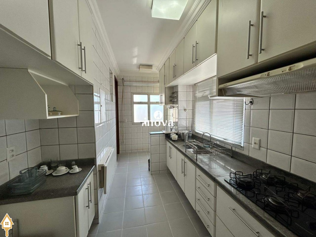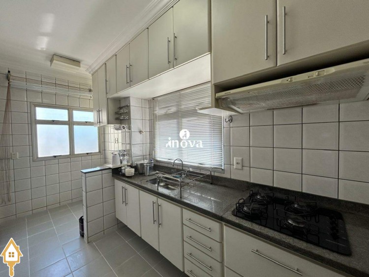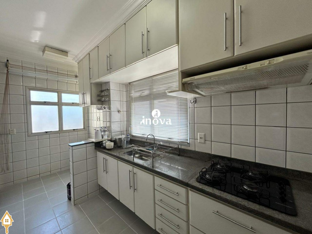 - Cozinha com armários, cooktop e coifa;