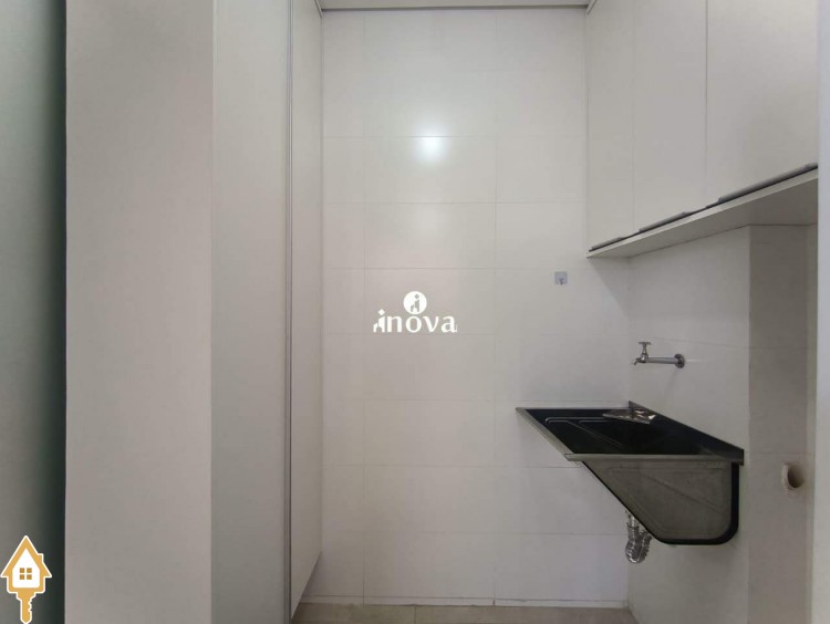 - Varanda gourmet com armário;