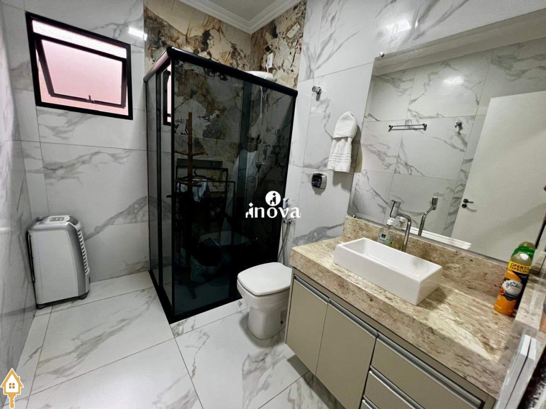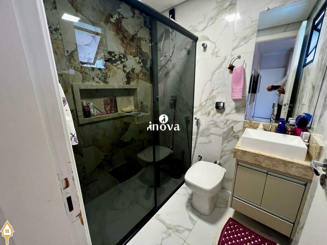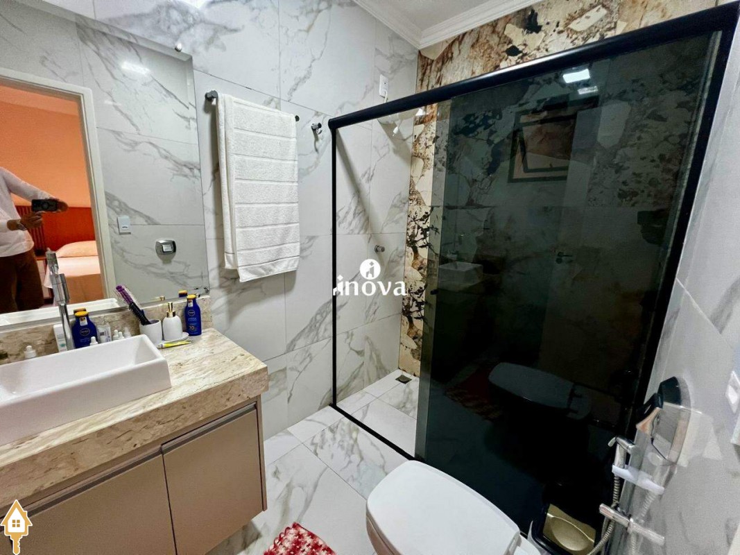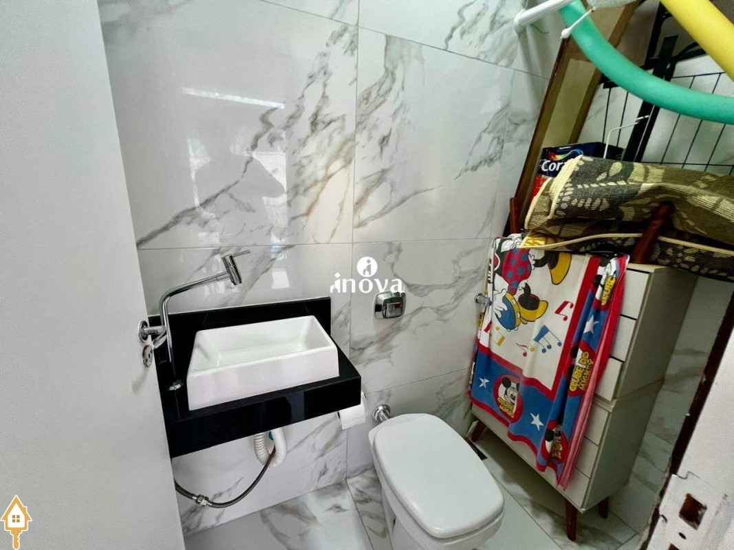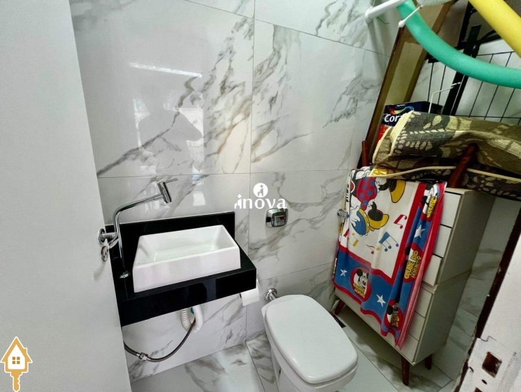 - Banheiro social com box, espelho e armário;