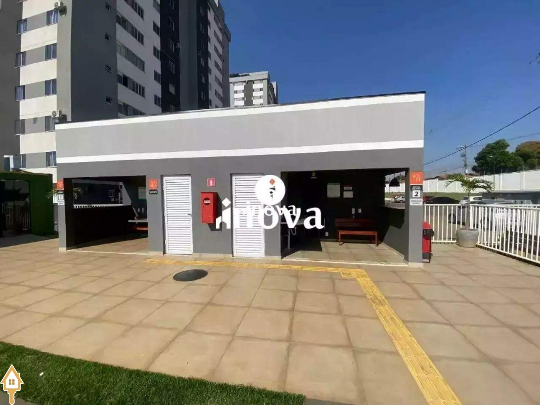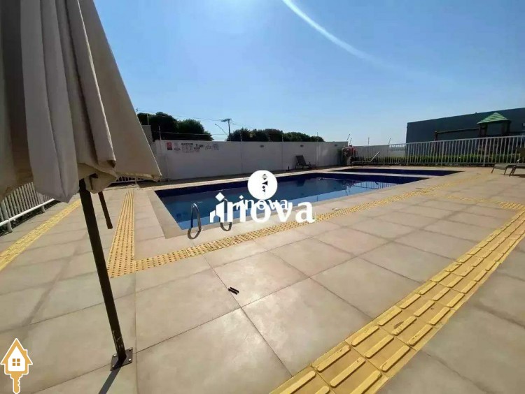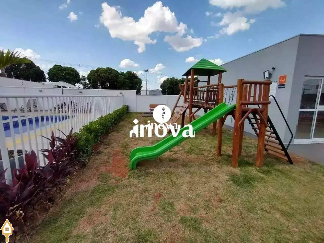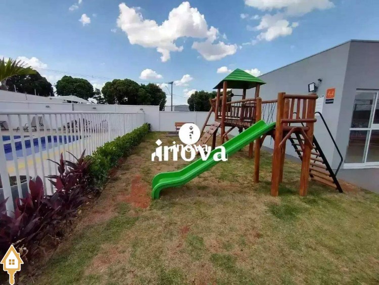 Condomínio possui área gourmet com churrasqueira, salão de festas, gazebo, quadra poliesportiva, playground, piscinas, área pet e portaria.