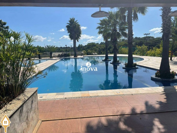 Condomínio com portaria 24 horas, piscinas, salão de festas, quadra poliesportiva, academia, playground e praças.
