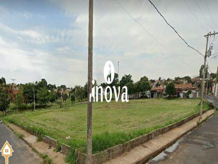 -Terreno de esquina com área total de 7.961,28m², já com passeio e muro baixo.