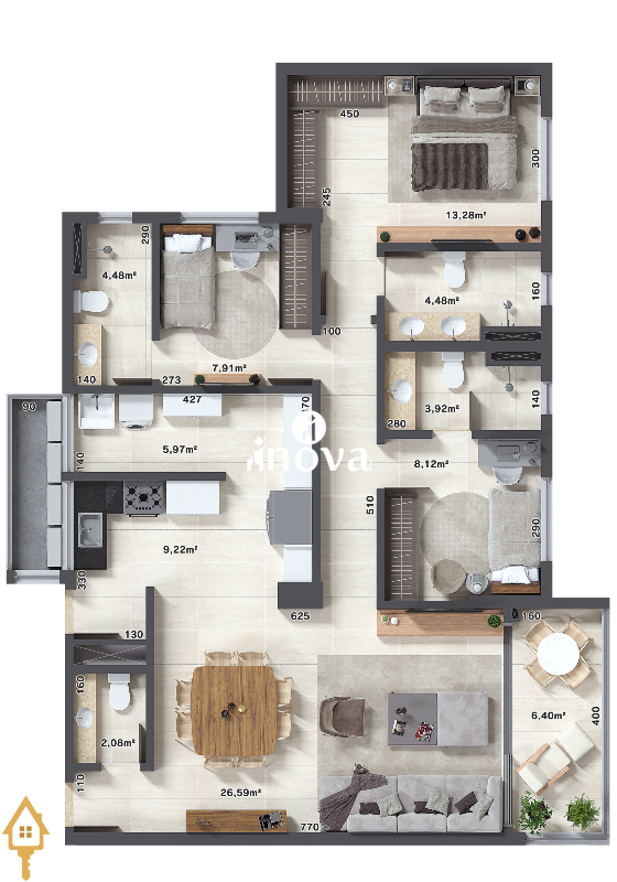 116,5m2 - R$ 590.000,00 a R$ 630.000,00;