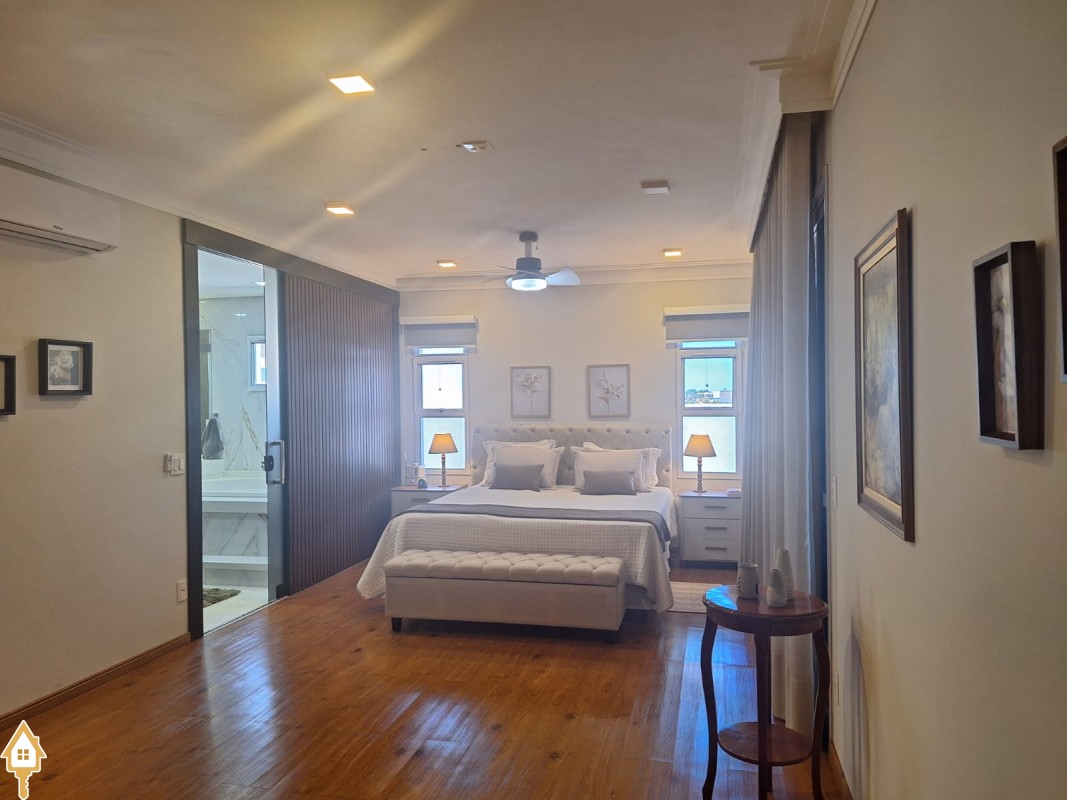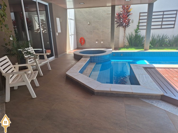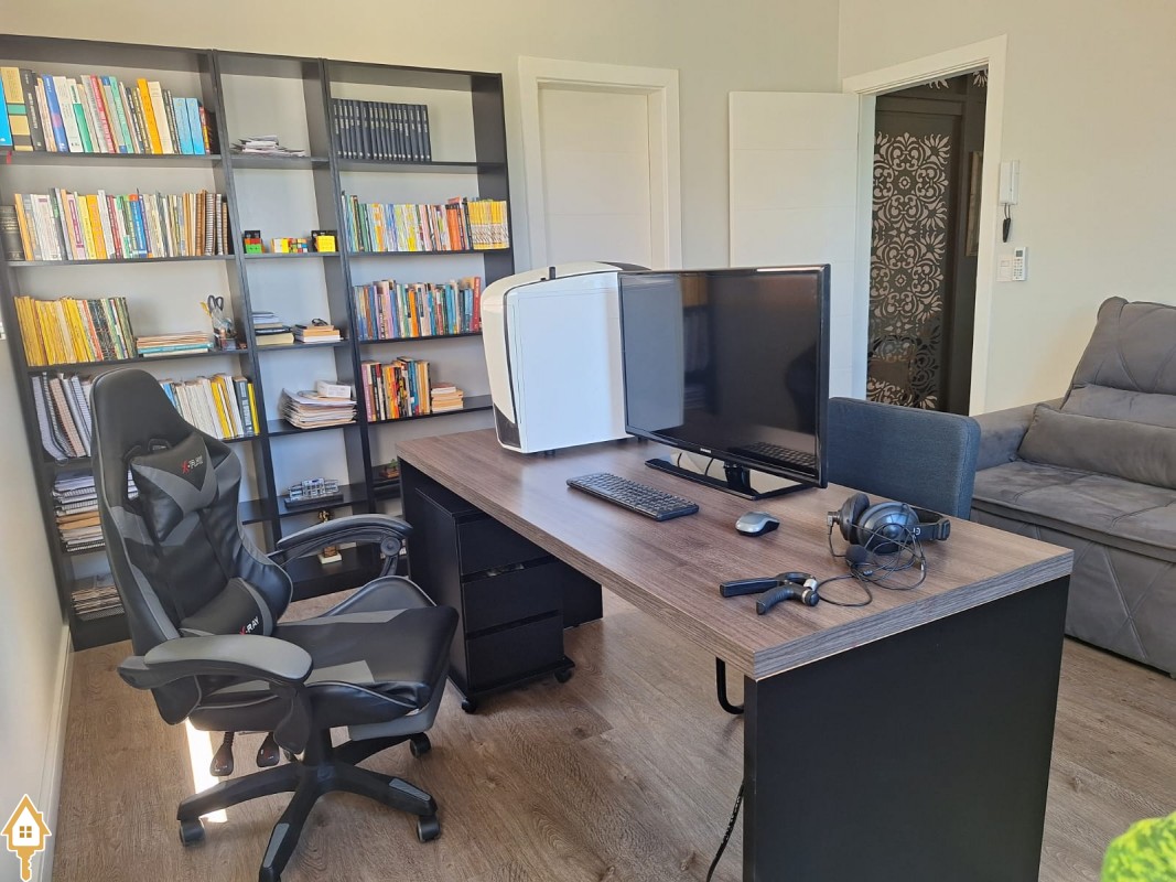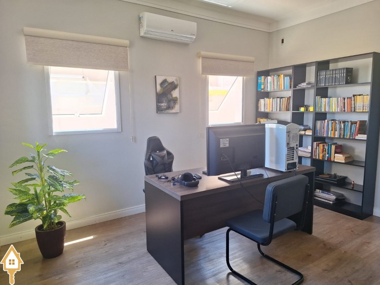 Sistema de irrigação automático. Ar condicionado na sala, escritório e quartos. Armários em todos os cômodos.