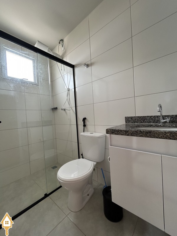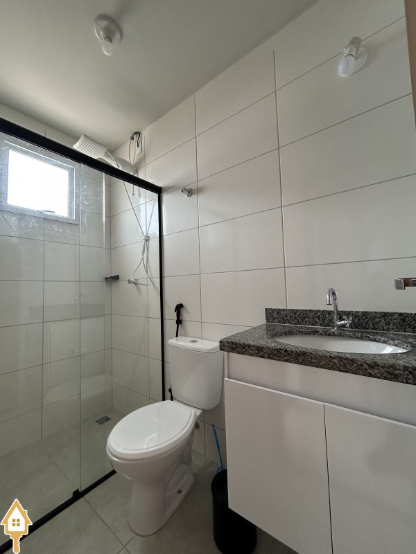 - Banheiros social com box de vidro e armário abaixo do lavatório