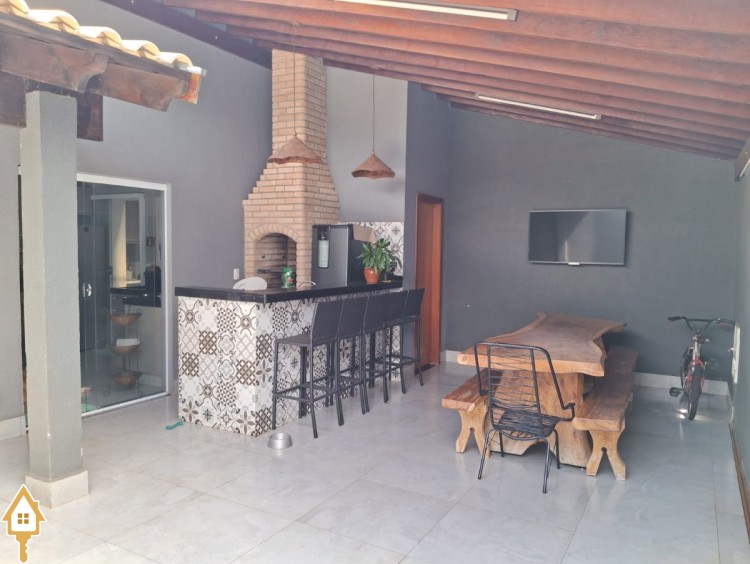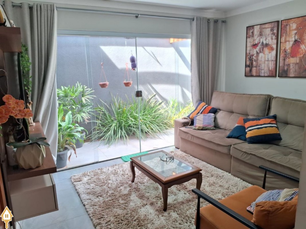 Beija Flor II, três suítes com armários, sala, cozinha toda planejada, varanda gourmet, lavabo, garagem para quatro carros, porcelanato, energia fotovoltaica, jardim nos corredores laterais.