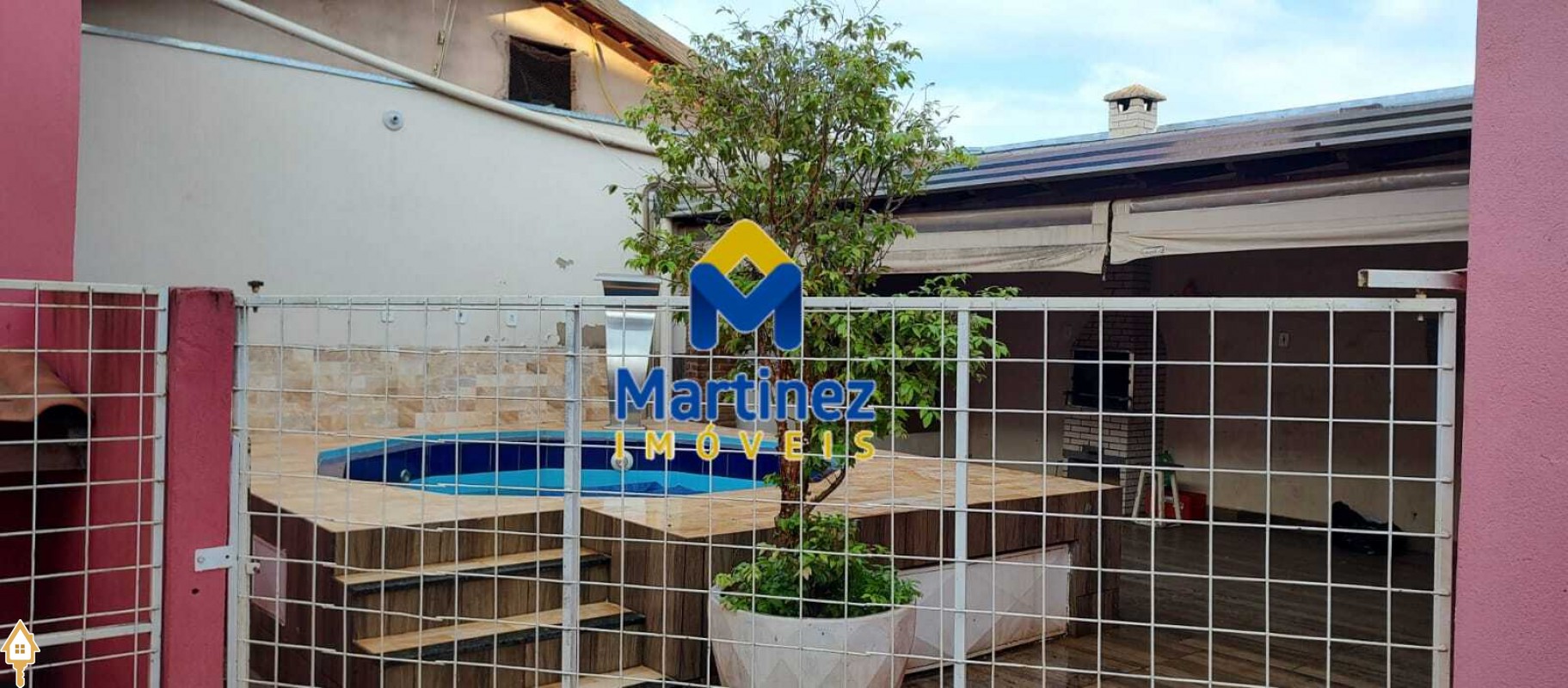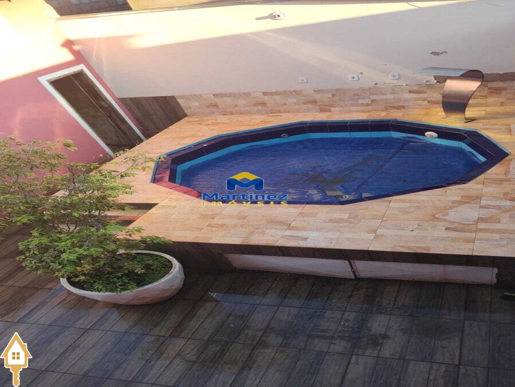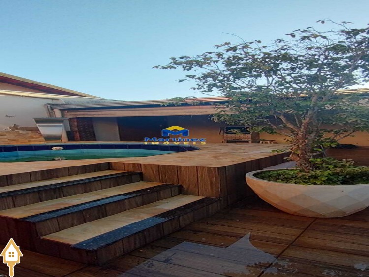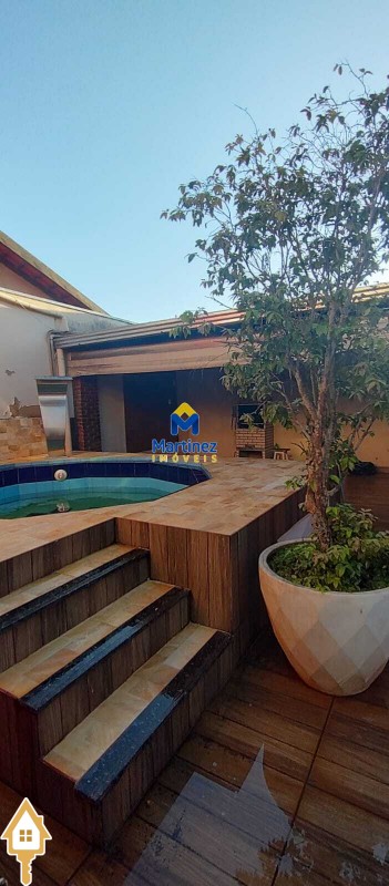 3 Quartos Cozinha planejada 2 Banheiros (sendo 1 interno e 1 externo) Área gourmet Ofurô aquecido e automatizado Garagem para 2 carros Portão social Portão eletrônico Canil para cachorro de porte grande
