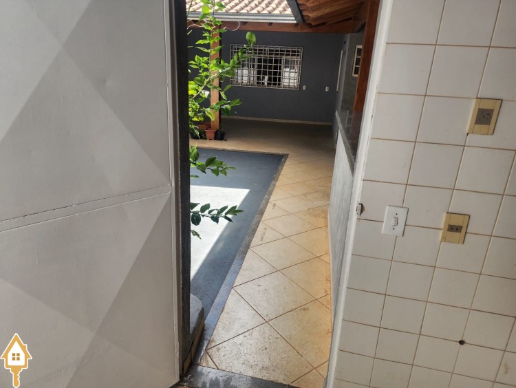 3 quartos sendo uma suíte, sala, cozinha, banheiro social, área de serviço, churrasqueira, fogão a lenha, varanda, garagem.