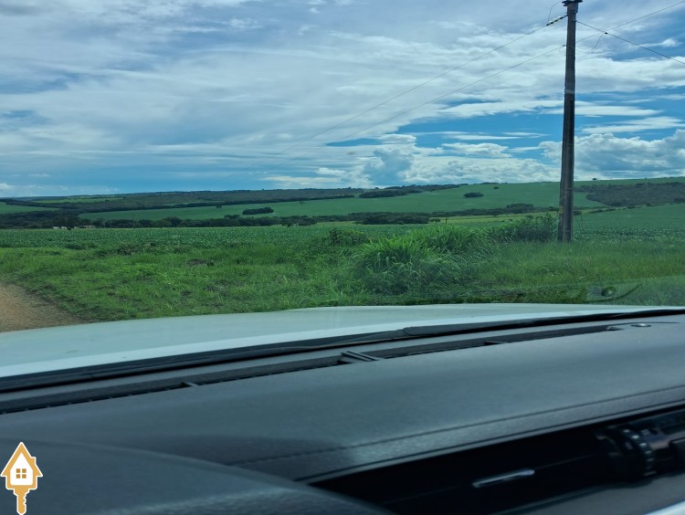 Descrição Área total de 210 alqueires ou 1.016 hectares Atualmente com 610 hectares em cultivo Potencial para abertura de aproximadamente 150 hectares adicionais Localizada a 25 km por estrada de chão Banha 5 km do Rio São Marcos Altitude de 950 metros Solo predominantemente de terra roxa (terrão puro) Presença de 30 a 40 hectares com cascalho localizado Estrada interna cascalhada já instalada Área de chapada entre 60 a 70 alqueires Energia trifásica passando dentro da propriedade (ligação atual monofásica) Estruturas existentes são simples e necessitam melhorias Histórico de lavoura com mais de 20 anos de produção
