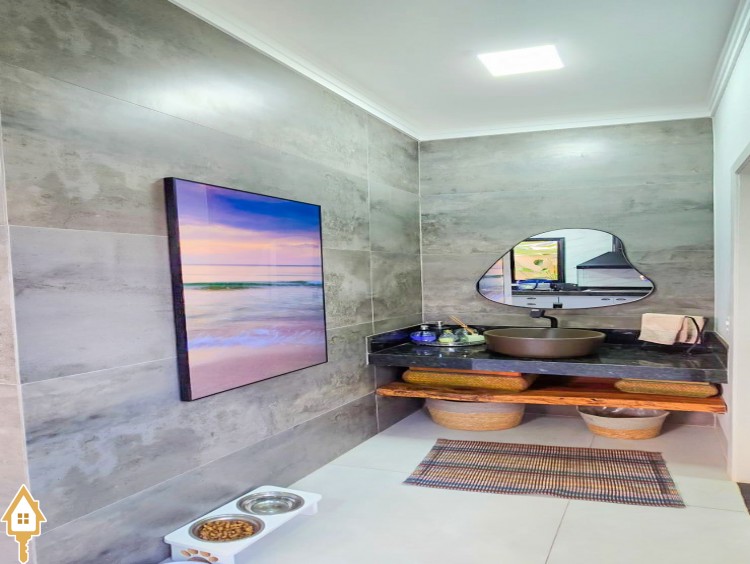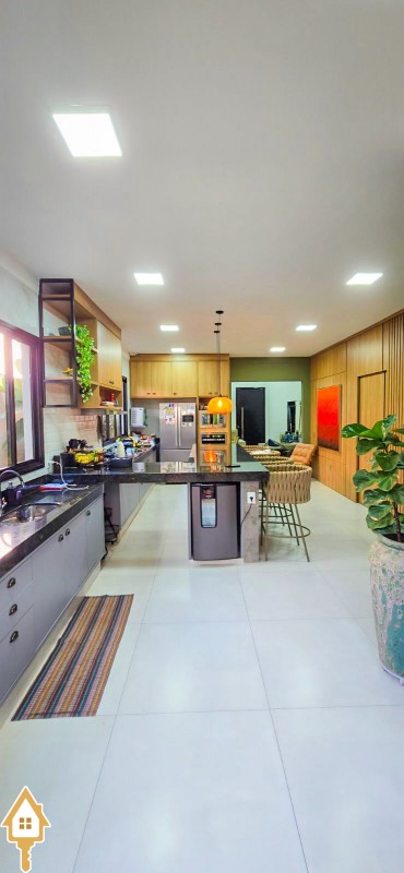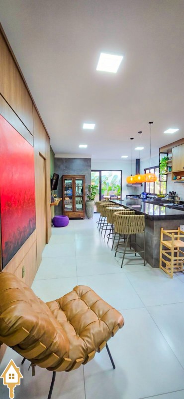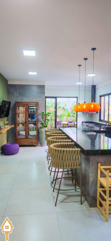 Cozinha gourmet com churrasqueira, ideal para momentos de lazer e convivência