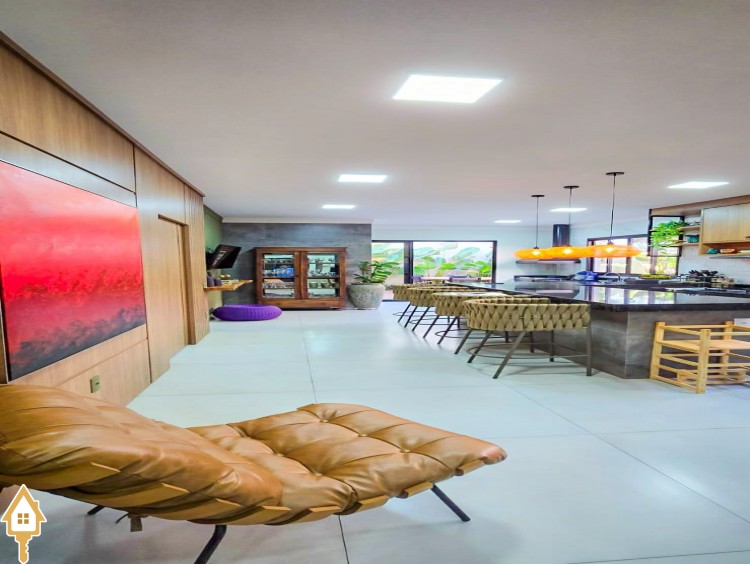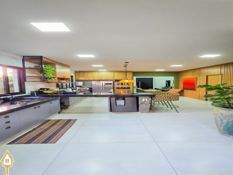 Espaços amplos e bem distribuídos, com integração entre ambientes sociais