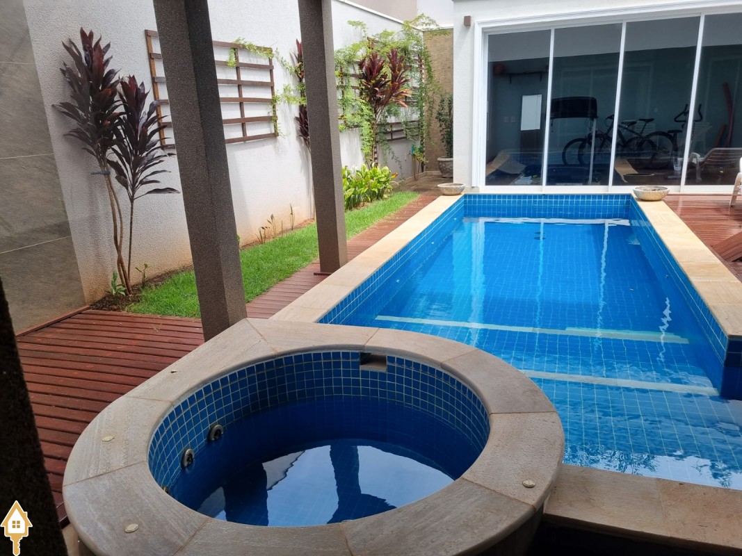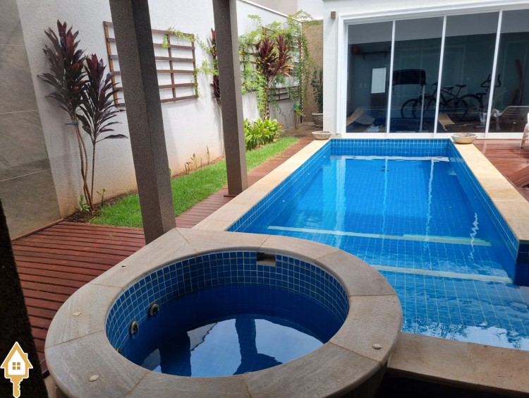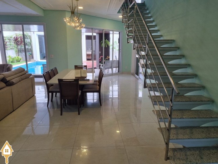Diferenciais: Todas as suítes, sala e escritório climatizados com ar-condicionado Piscina integrada à área de lazer, ideal para momentos de descontração Sauna e banheira de hidromassagem para experiências de bem-estar Espaço gourmet completo com churrasqueira, forno a lenha e fornalha, perfeito para receber convidados Ambiente fitness dentro da residência, proporcionando praticidade e saúde Garagem ampla para até 06 carros, atendendo famílias grandes ou colecionadores de veículos