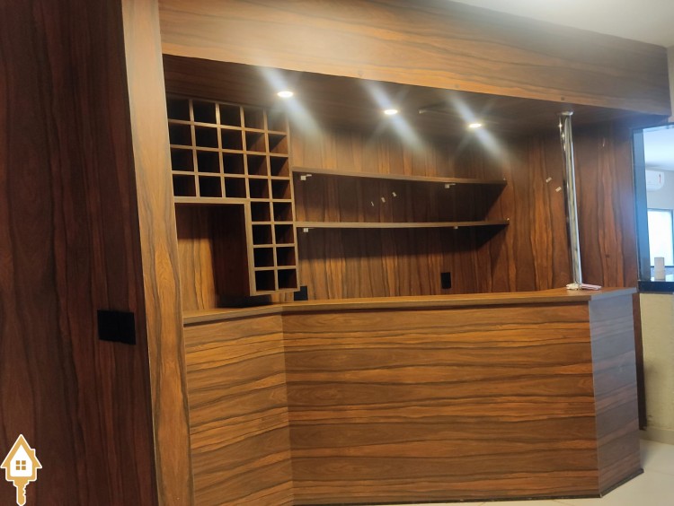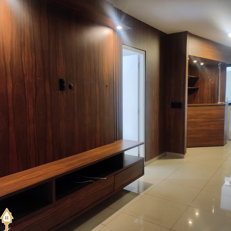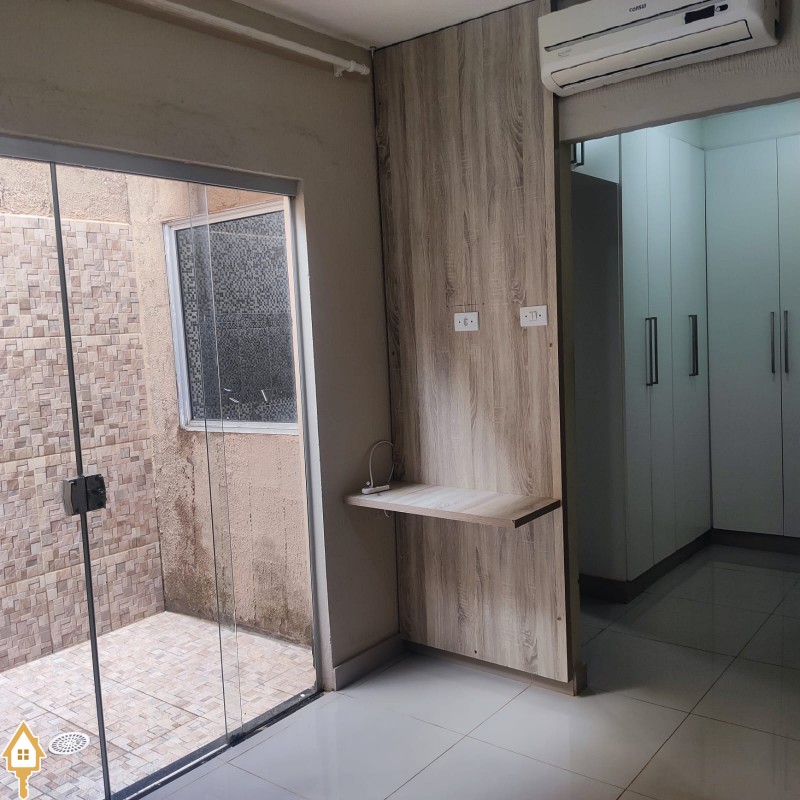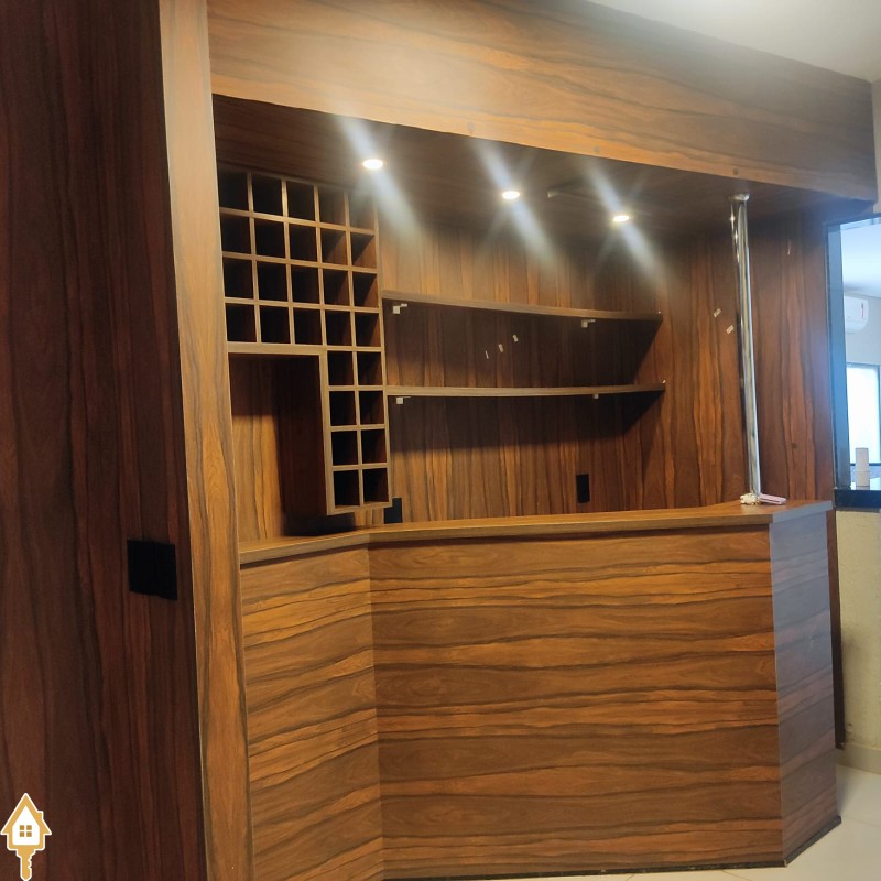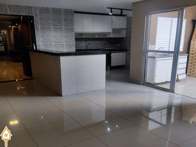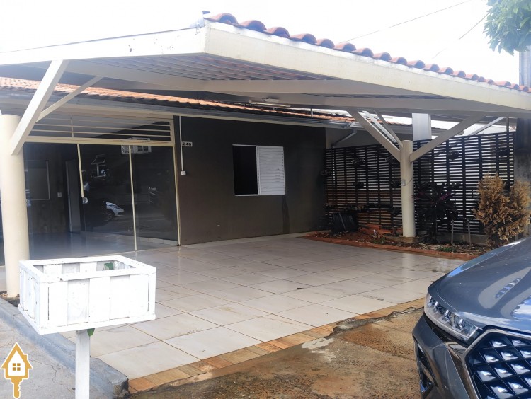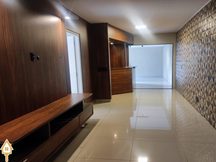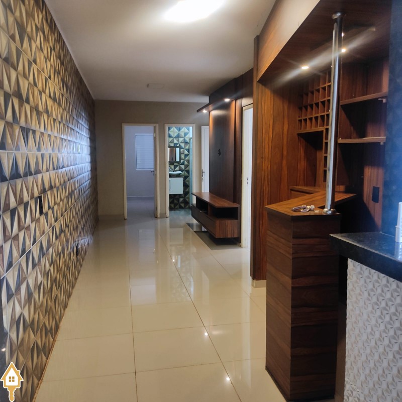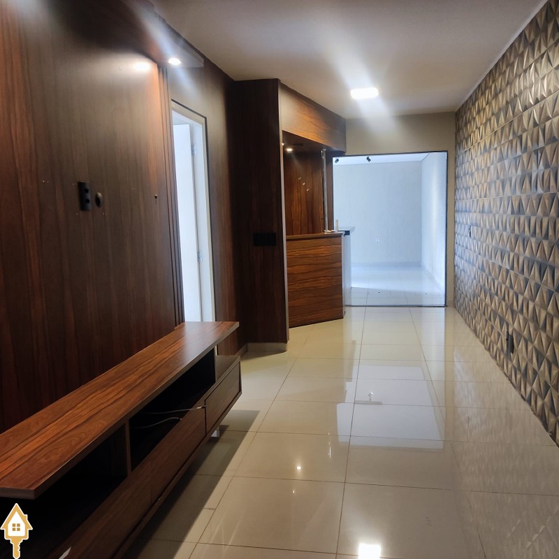 Descrição: Garagem coberta para 2 carros, com jardim de chão e jardim horizontal integrado. Estacionamento adicional disponível no condomínio. Despensa prática na varanda frontal, ideal para guardar objetos diversos. Varanda frontal fechada com porta blindex, acesso direto à sala principal. Sala planejada com painel de TV, divisórias, barzinho com balcão e estrutura para vinhos e bebidas. Paredes com acabamento em 3D, trazendo sofisticação ao ambiente. Quarto com guarda-roupa planejado. Suíte com closet e área externa para jardim, acesso por porta blindex. Banheiro social funcional. Cozinha ampla e iluminada, equipada com armários planejados, balcão e espaço para mesa de jantar grande. Área gourmet com pia, armário e churrasqueira. Lavanderia com instalação para máquina de lavar e armário para produtos de limpeza.
