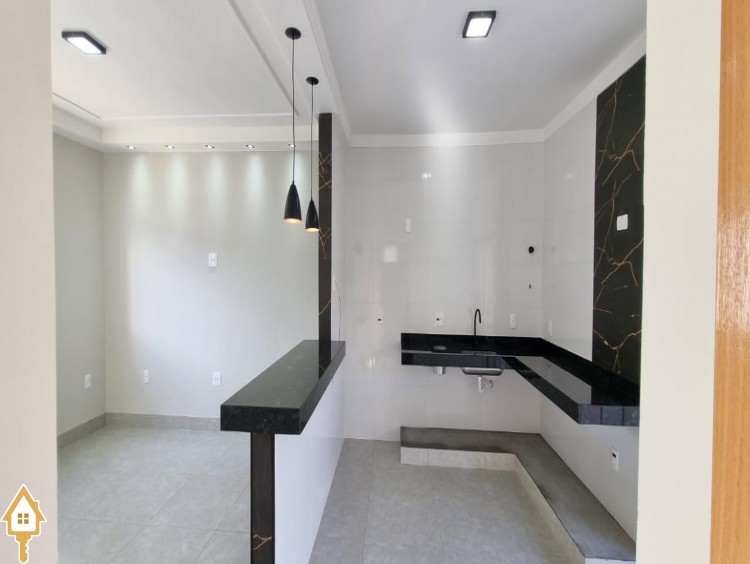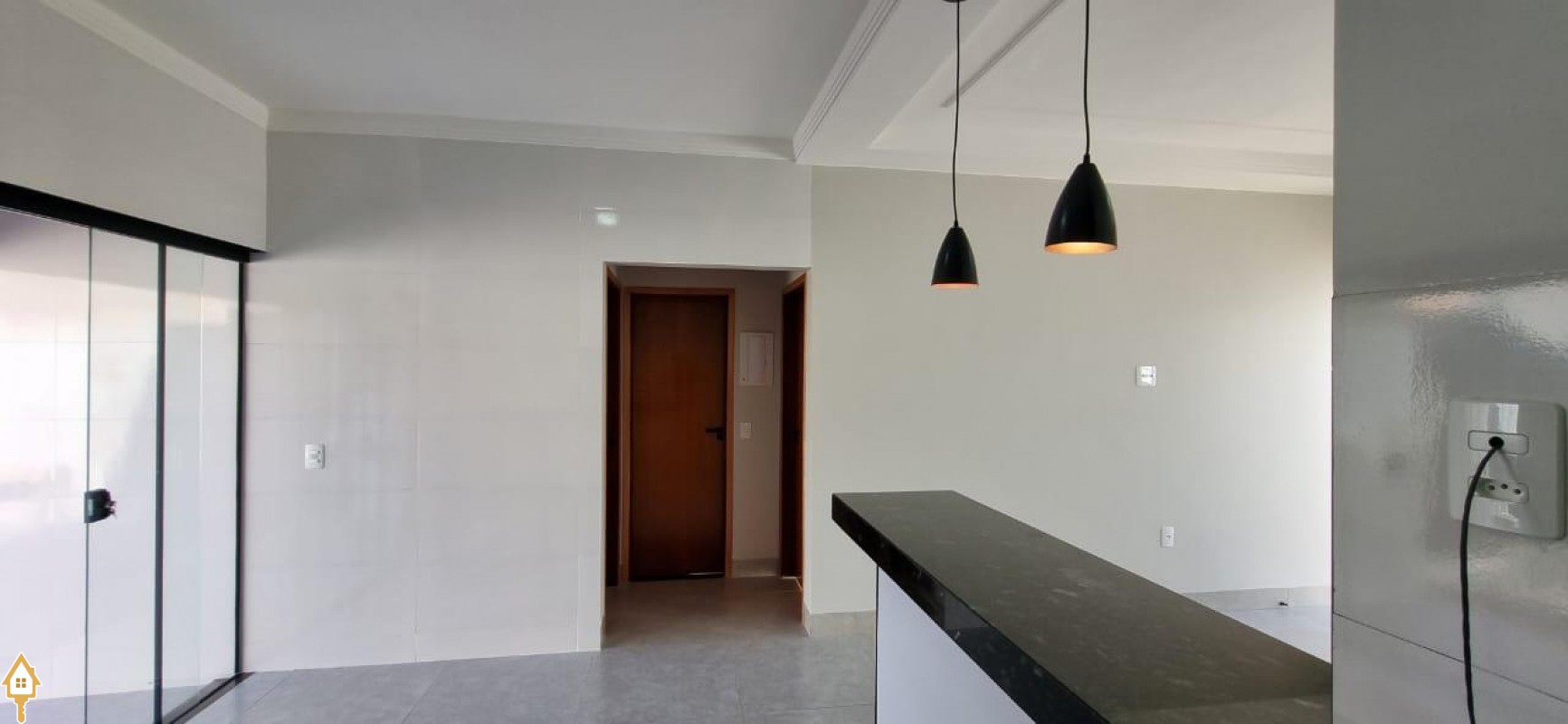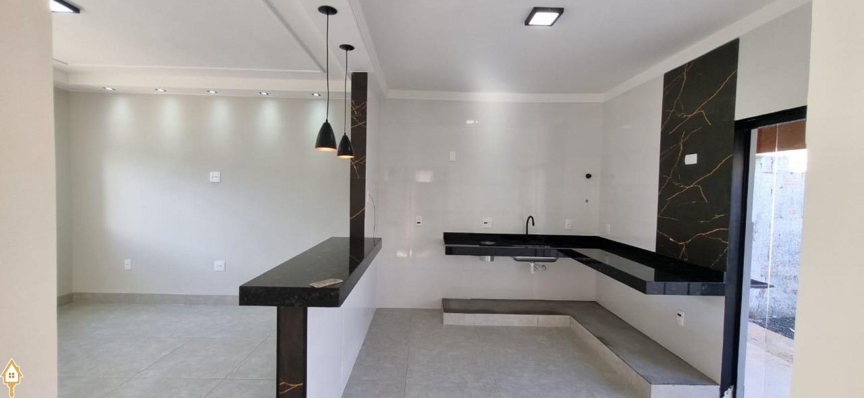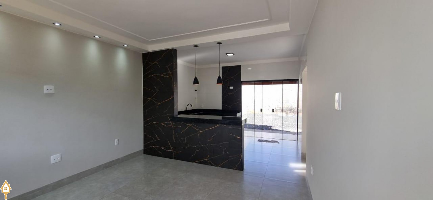 Características: 2 quartos, sendo 1 suíte com closet. Sala ampla com sanca de gesso e iluminação diferenciada. Banheiros modernos com nicho e cuba em porcelanato. Cozinha funcional integrada aos ambientes. Frente concretada, oferecendo praticidade e fácil manutenção. Preparação para garagem.
