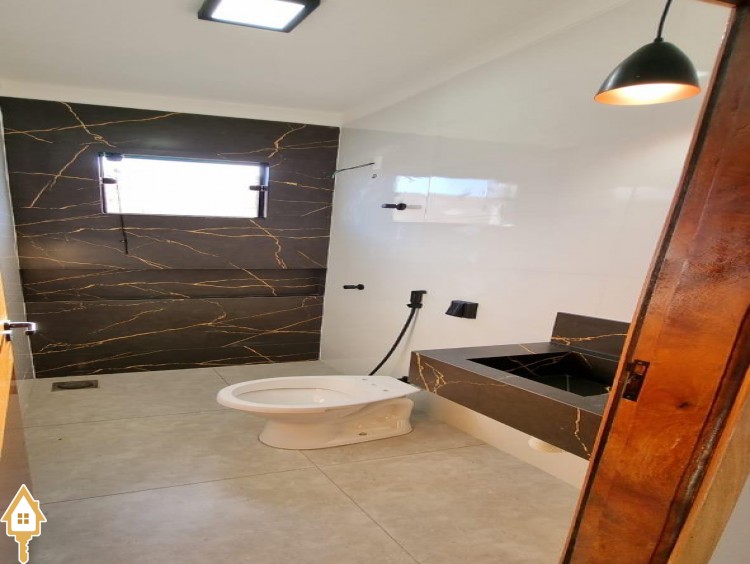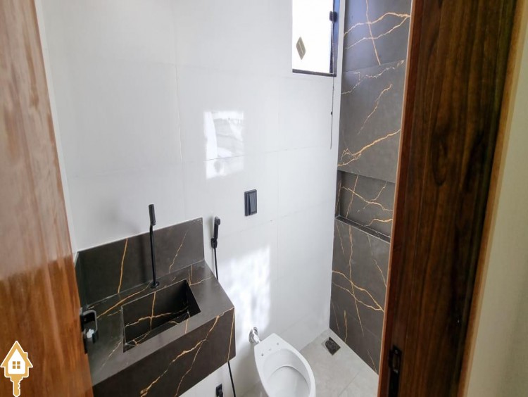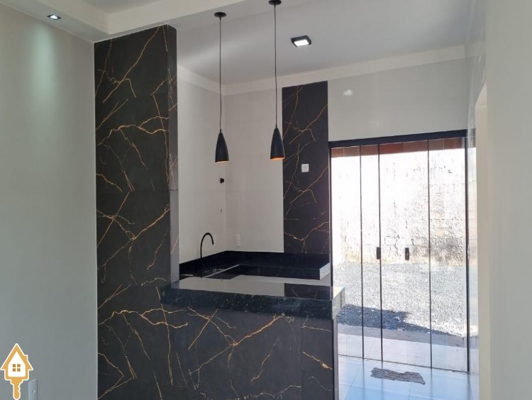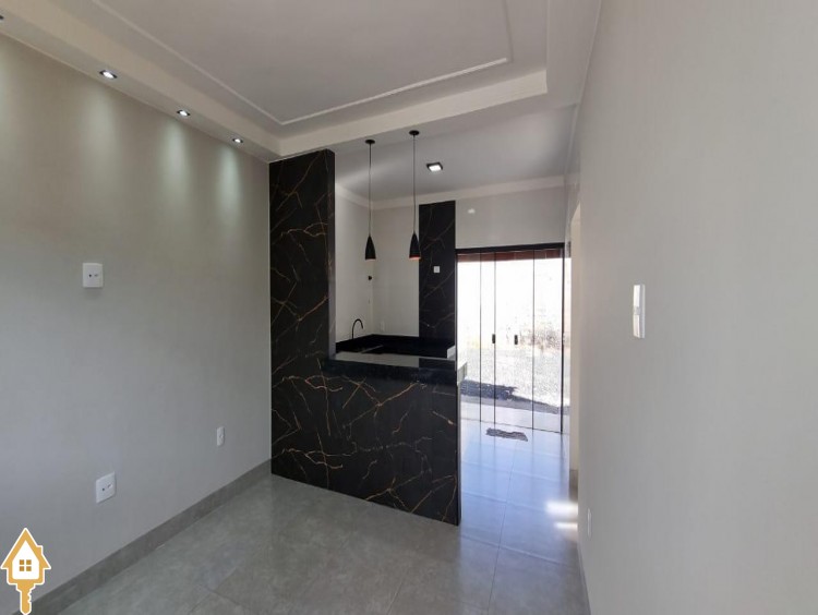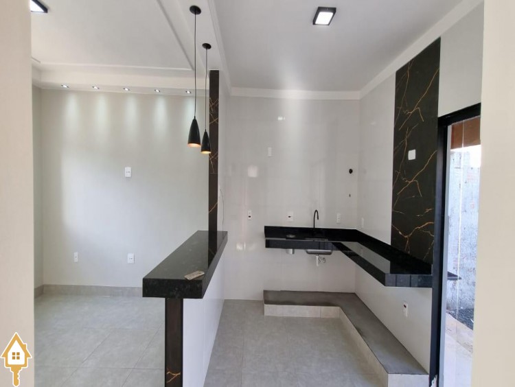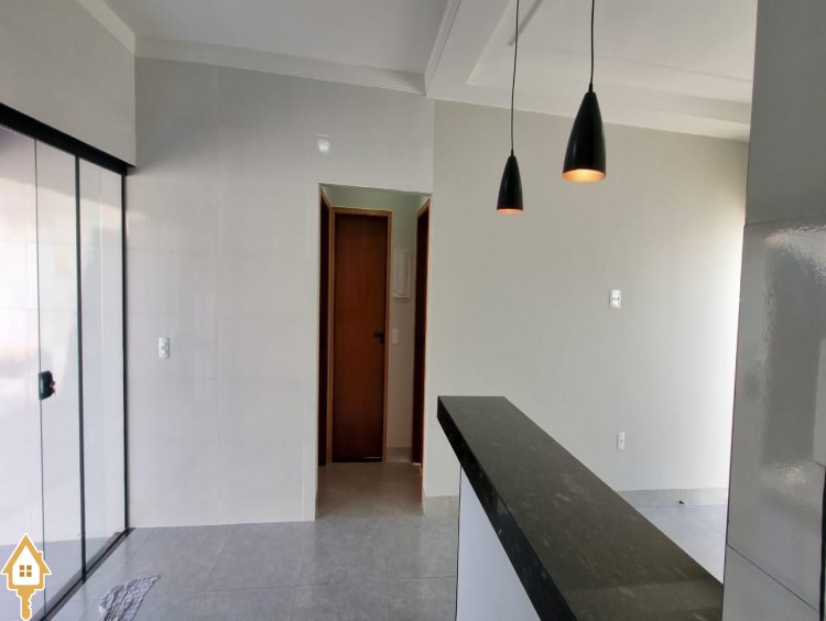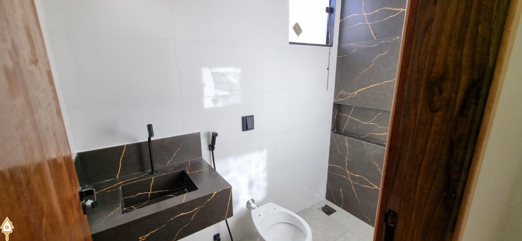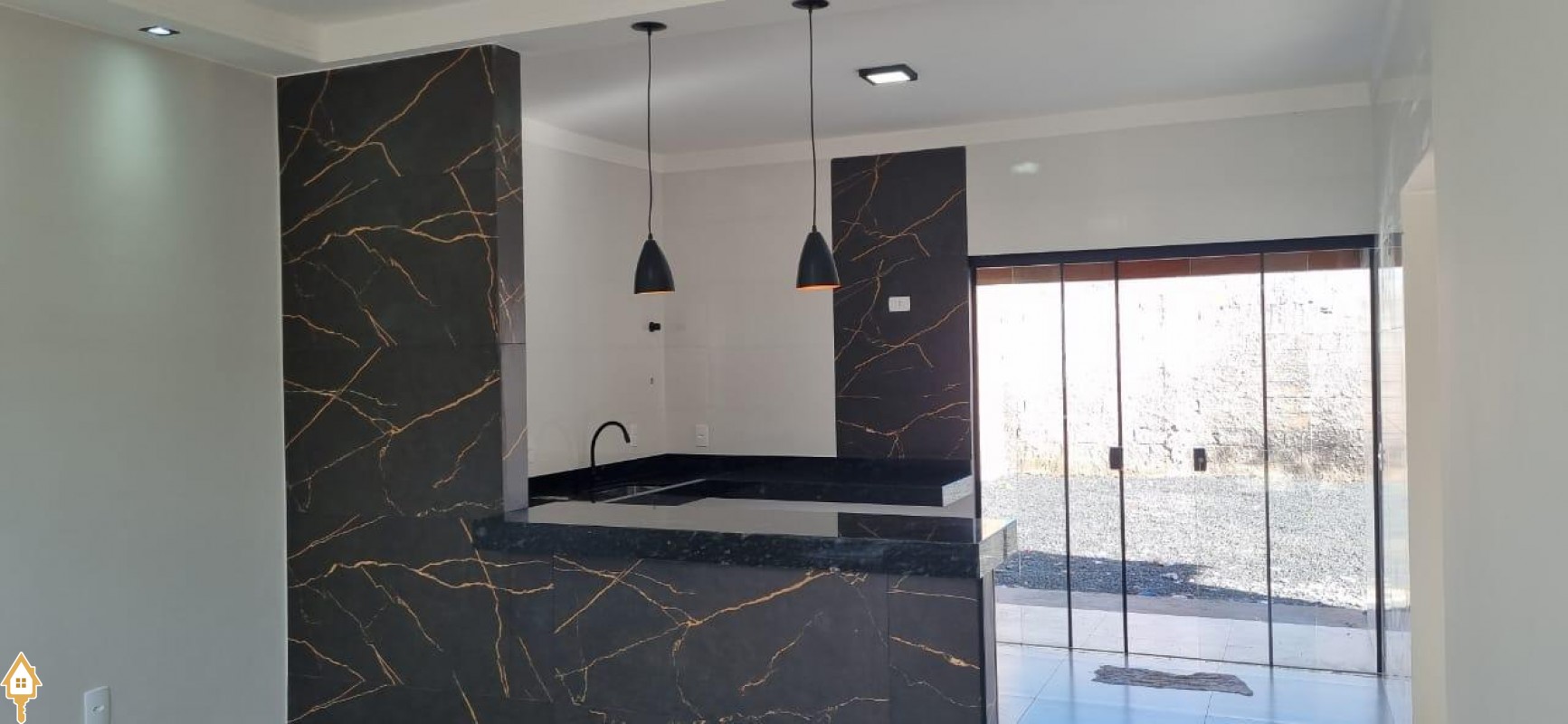 Características: 2 quartos, sendo 1 suíte com closet. Sala ampla com sanca de gesso e iluminação diferenciada. Banheiros modernos com nicho e cuba em porcelanato. Cozinha funcional integrada aos ambientes. Frente concretada, oferecendo praticidade e fácil manutenção. Preparação para garagem.