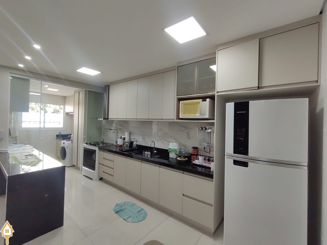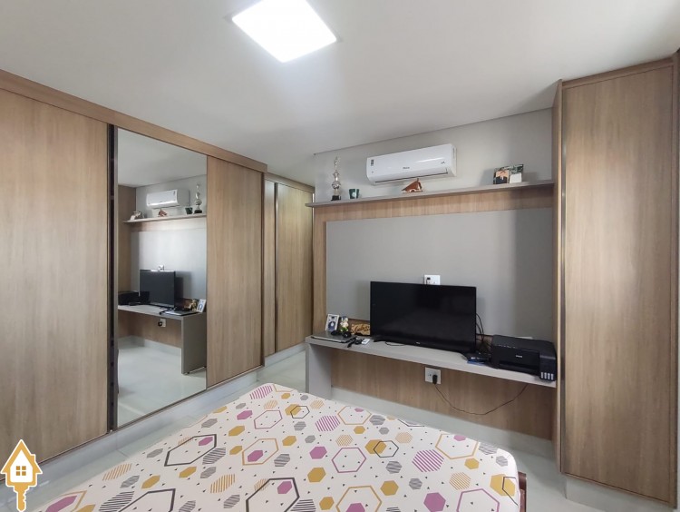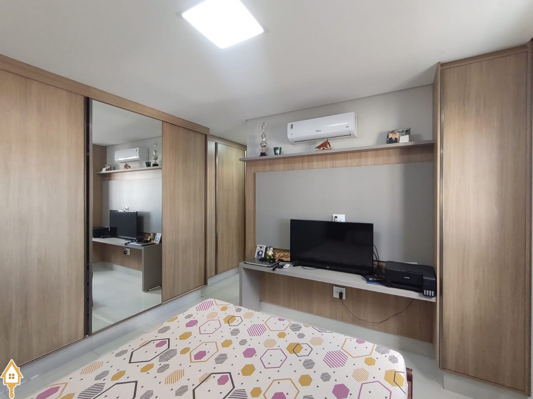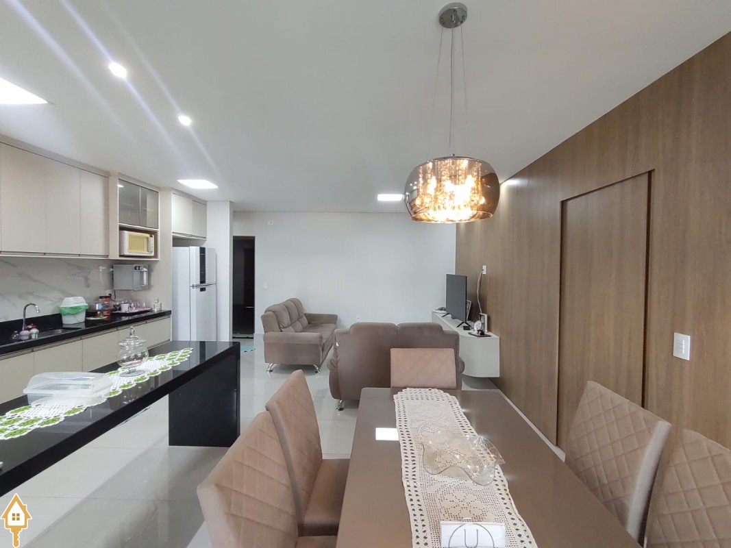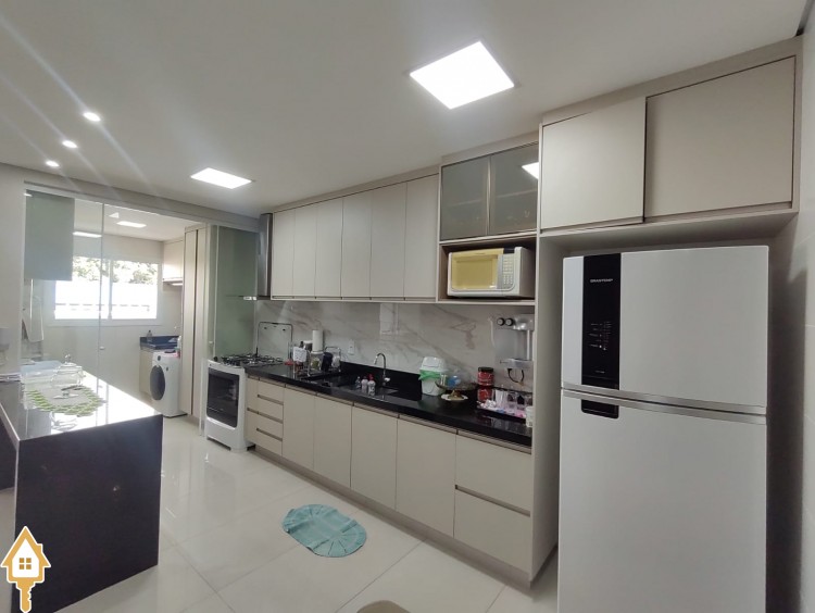 -03 quartos(sendo 01 suíte) armários embutidos em MDF -Sala ampla com Sacada Gourmet -Cozinha planejada rica em planejados -Banheiros com Box blindex e armários -Iluminação em LED -Piso porcelanato -Ar condicionado -Garagem 02 carros