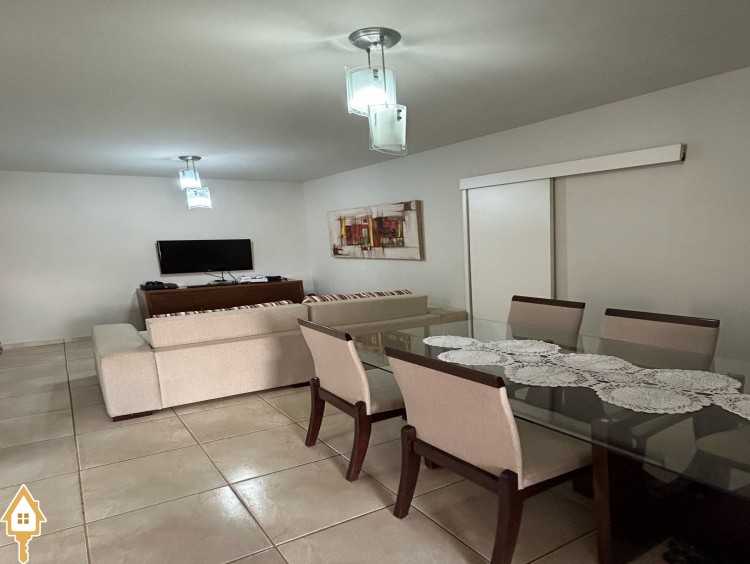 -03 quartos(01 suíte com closet) . -Armários planejados quartos -Banheiro social com box -Sala 02 ambientes com ar condicionado -jardim de inverno -Cozinha planejada -Área serviço coberta -Ampla varanda nos fundos da casa com bancada e pia granito e armários -Brinquedoteca fechada com blindex -Ducha -Garagem para 02 carros