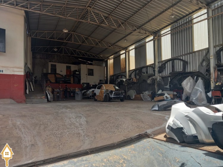 Sala recepção, 02 escritórios, 02 banheiros, com mesanino, 02 Galpões e 01 aréa aberta.
