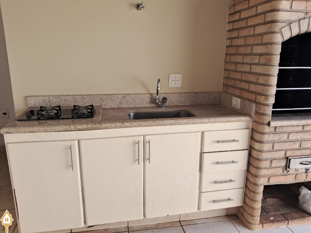 Garagem para 02 carros cobertos, pia com armário e churrasqueira, lavabo, portão eletrônico, interfone e cerca elétrica