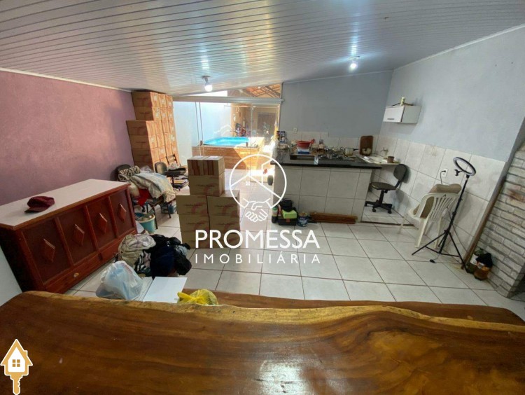 03 quartos, sala, cozinha, banheiro social, banheiro externo, hidromassagem, área gourmet, área de serviço coberta e garagem p/ 02 carros.