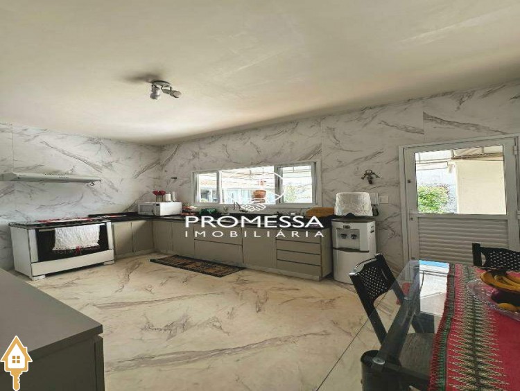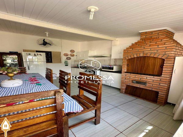 Edícula lateral com ampla área gourmet completa: churrasqueira a carvão, pia, armários, 6 ventiladores de teto, cortinas, blindex, 2 quartos, hall e banheiro.