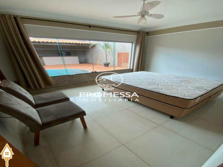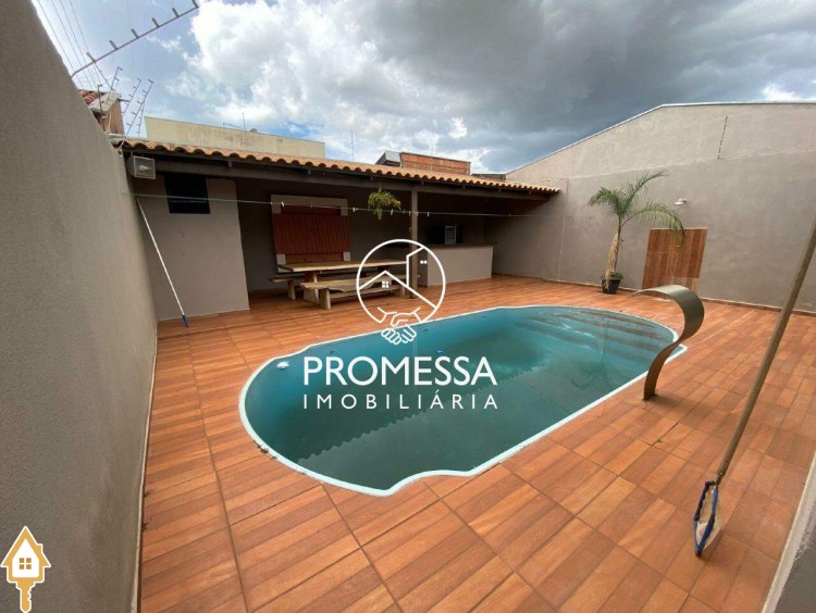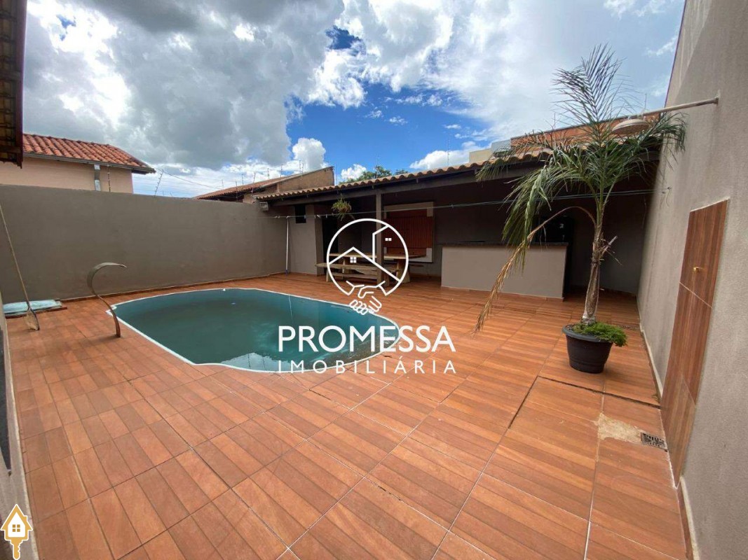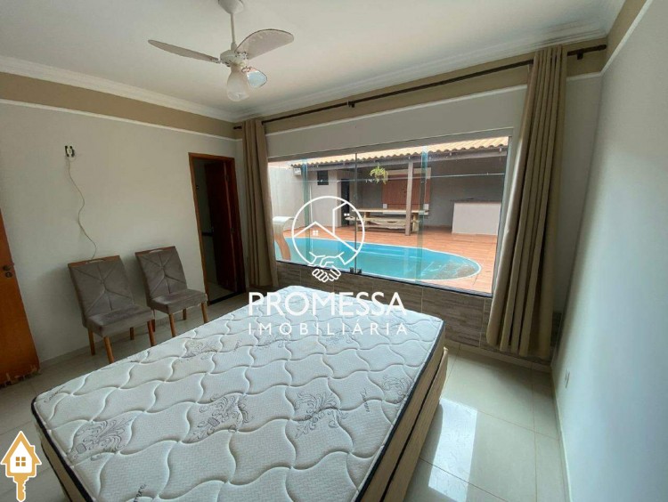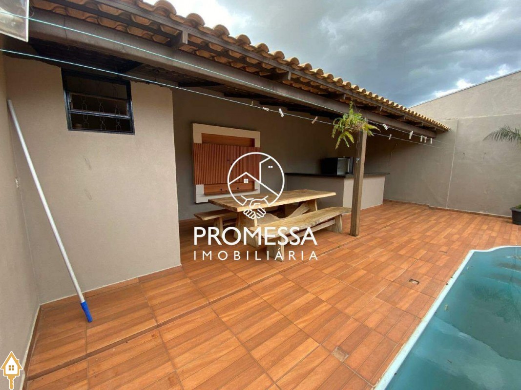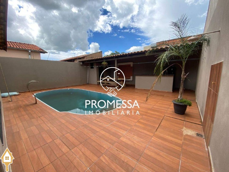 03 quartos sendo 01 suíte, sala com painel de tv e armário, cozinha planejada, banheiro social, banheiro externo, área de serviço, área gourmet com mesa rústica de madeira, piscina com cascata e garagem para 03 carros. ID IMOVIEW: 930