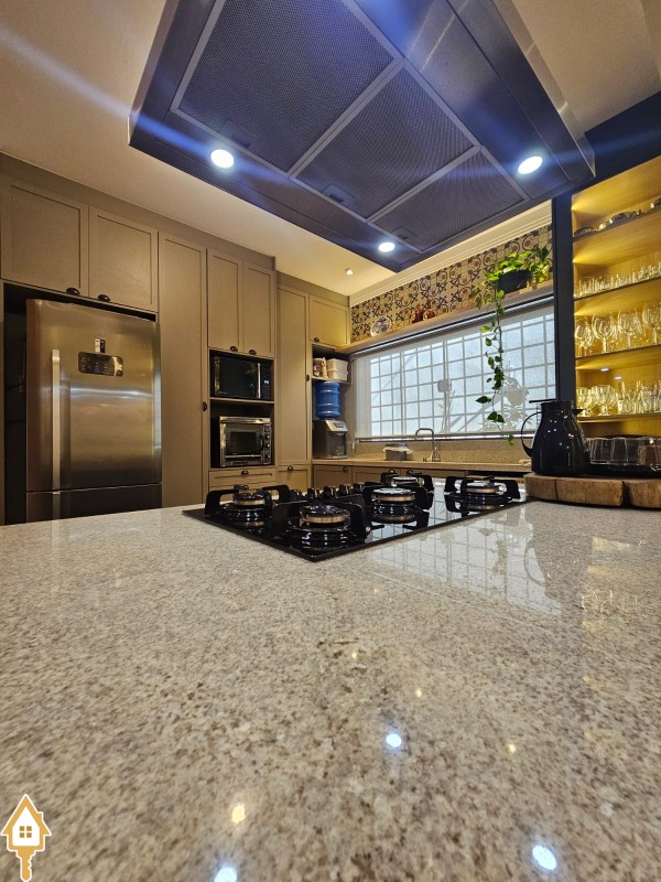 . Varanda gourmet com forno, fogão e churrasqueira
