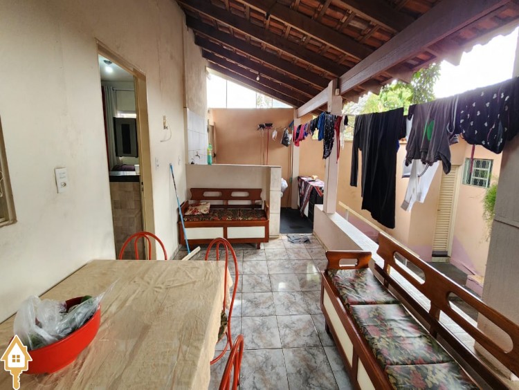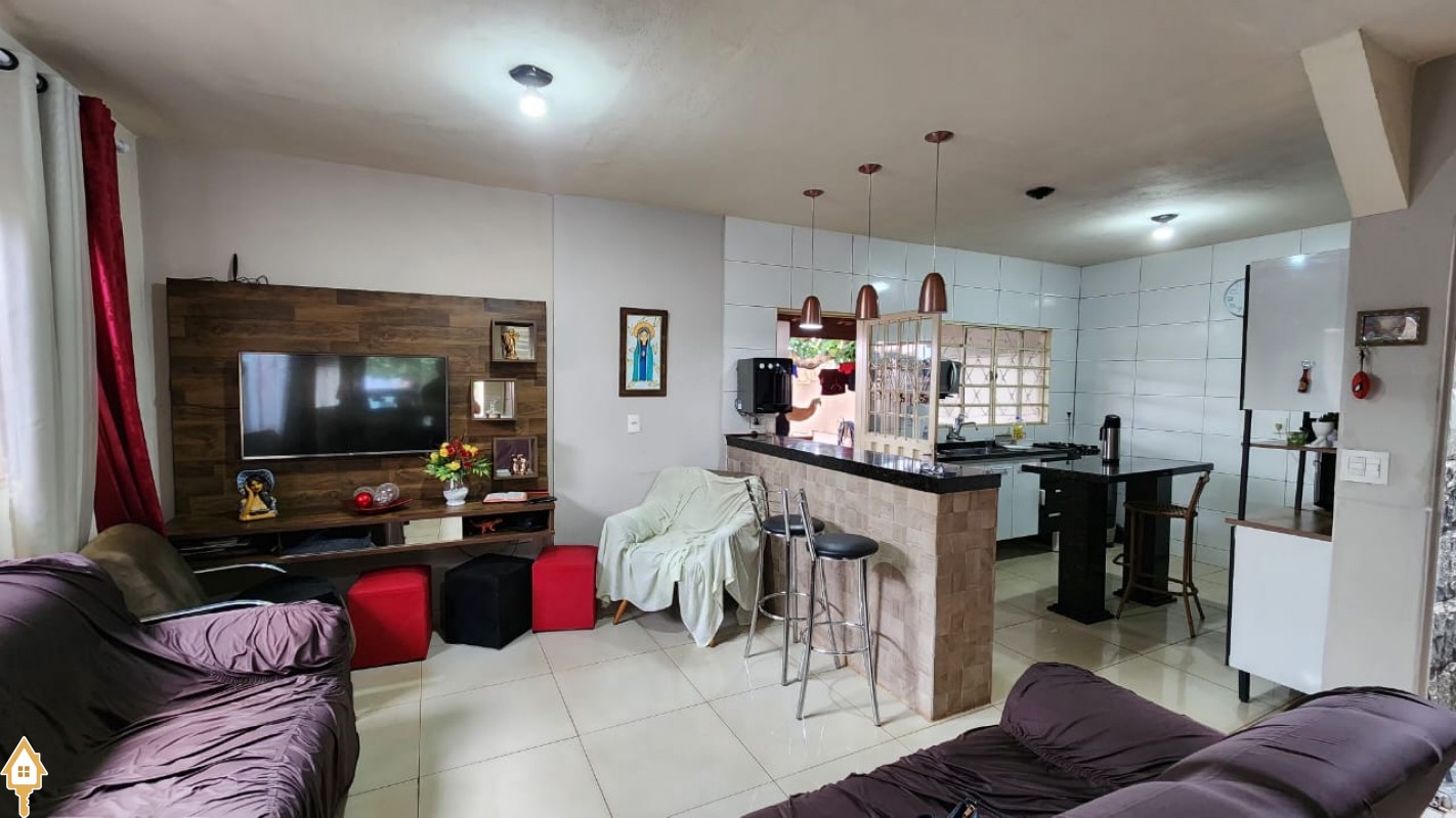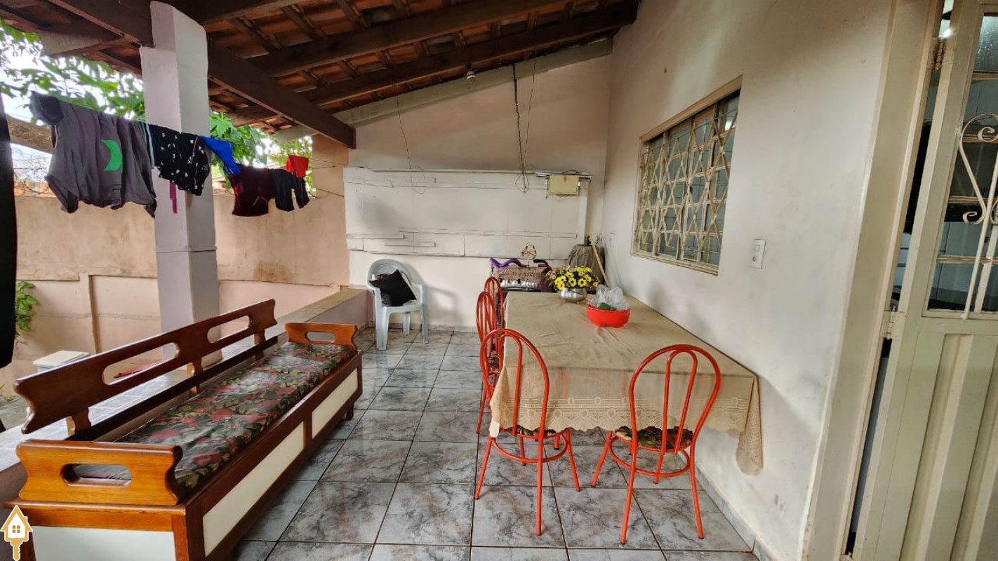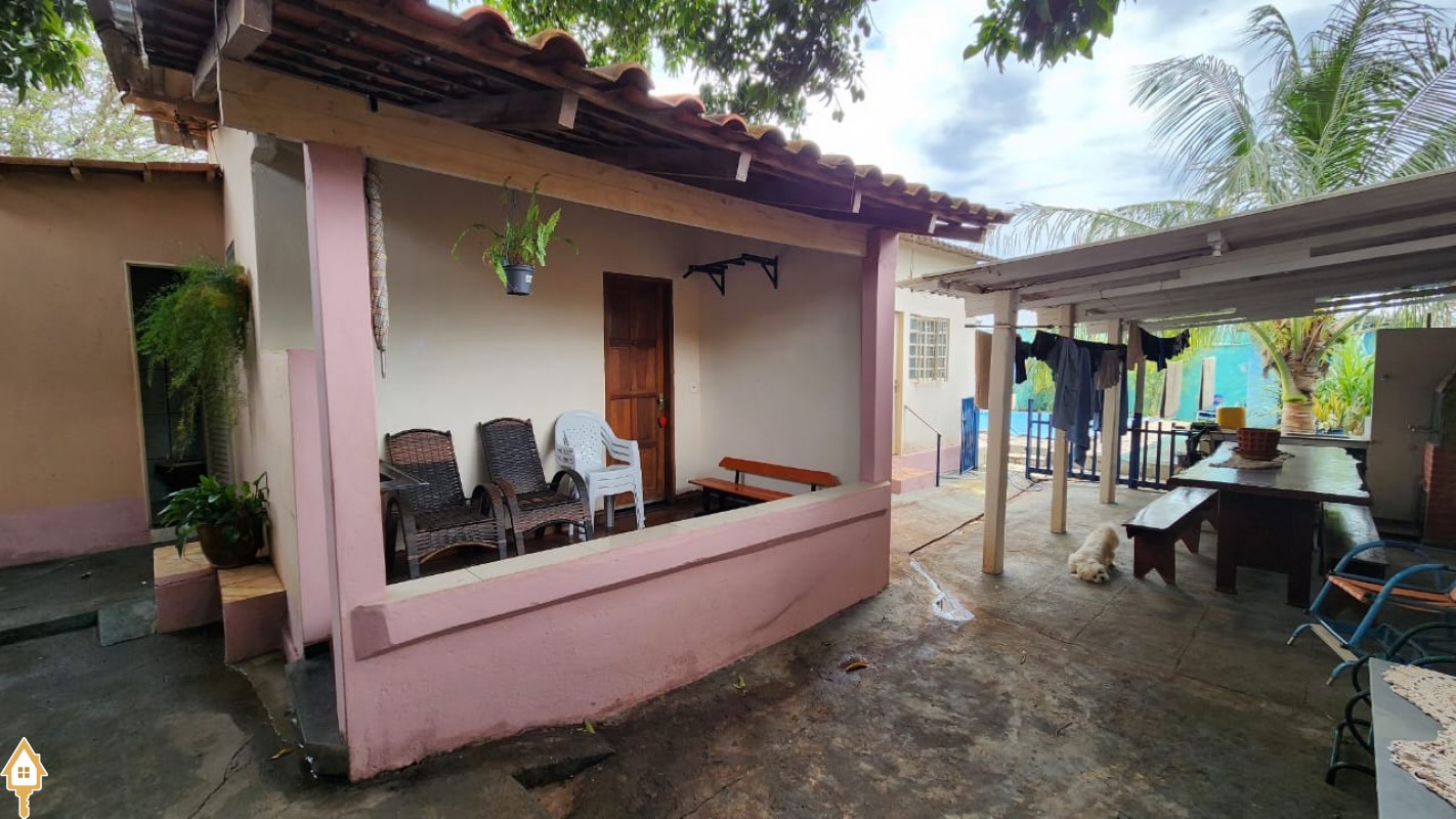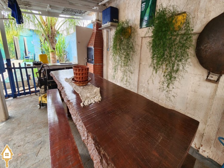 A casa possui 350 m² de área total e 140 m² de construção. Composta por: