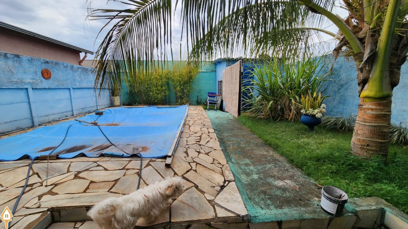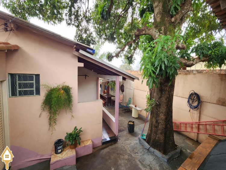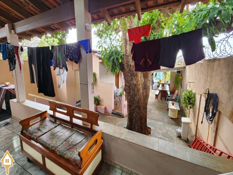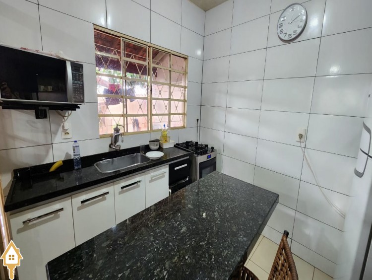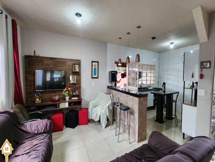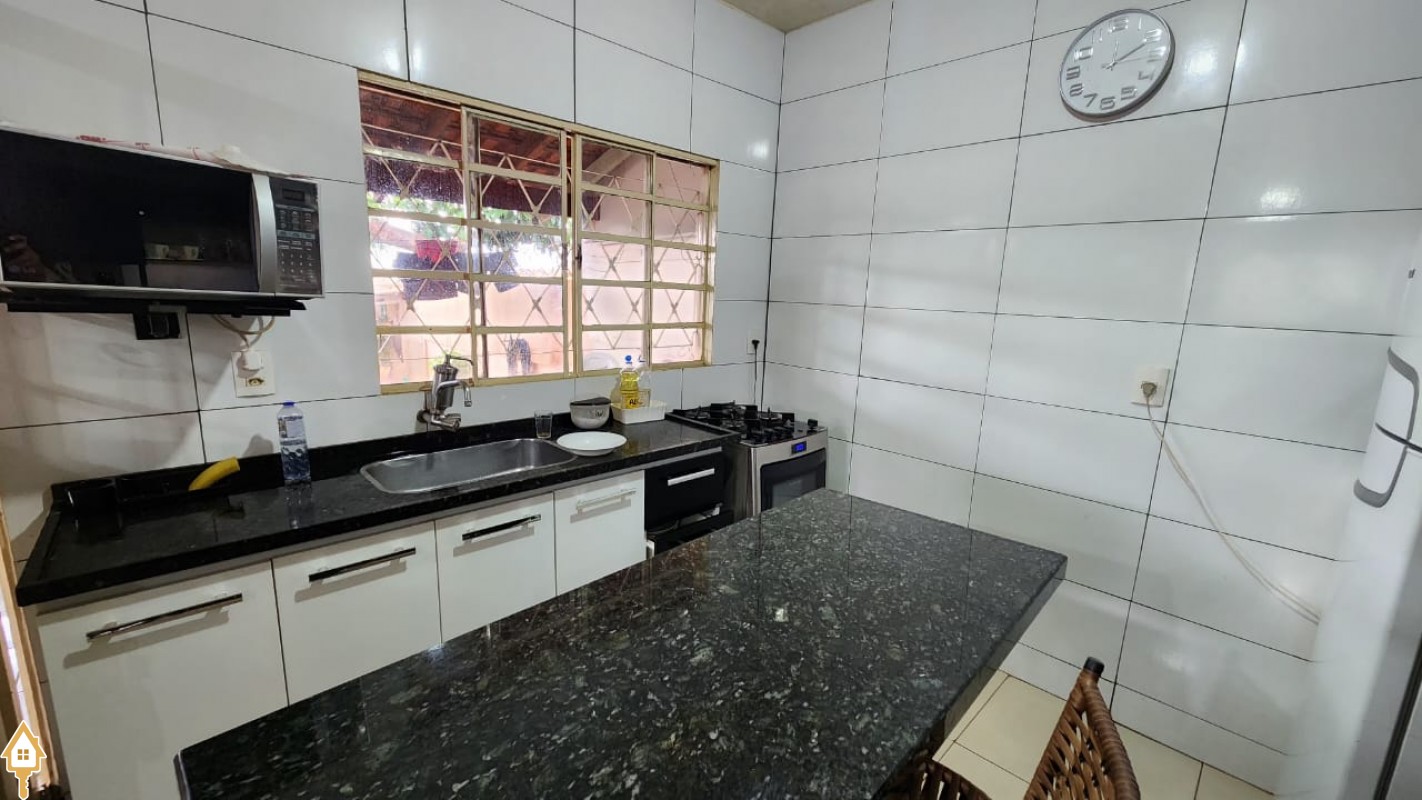 A casa possui 350 m² de área total e 140 m² de construção. Composta por: