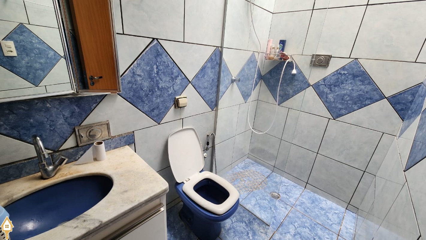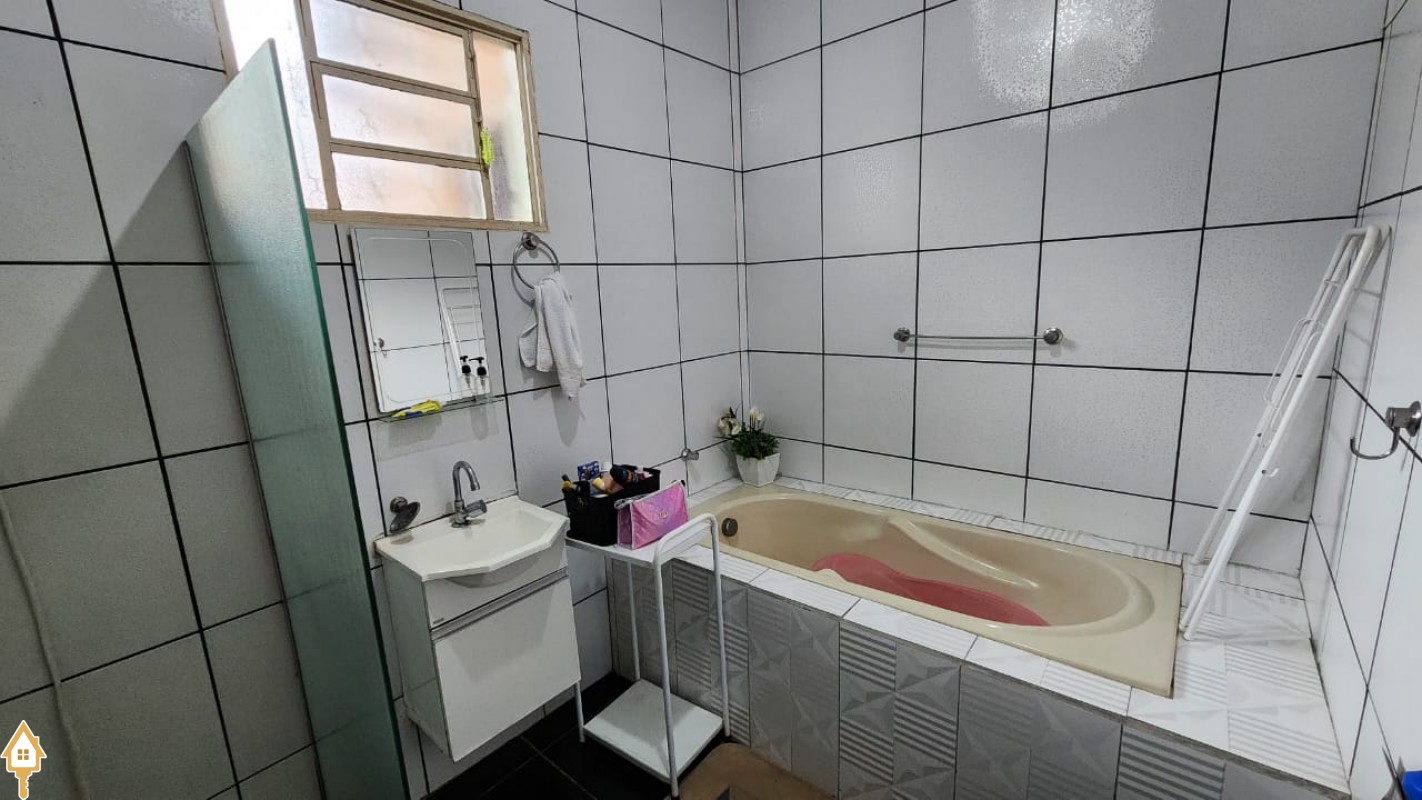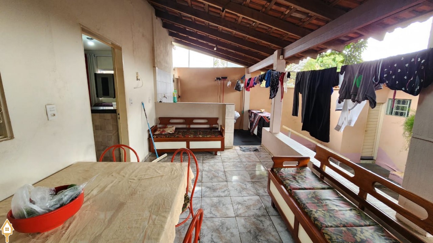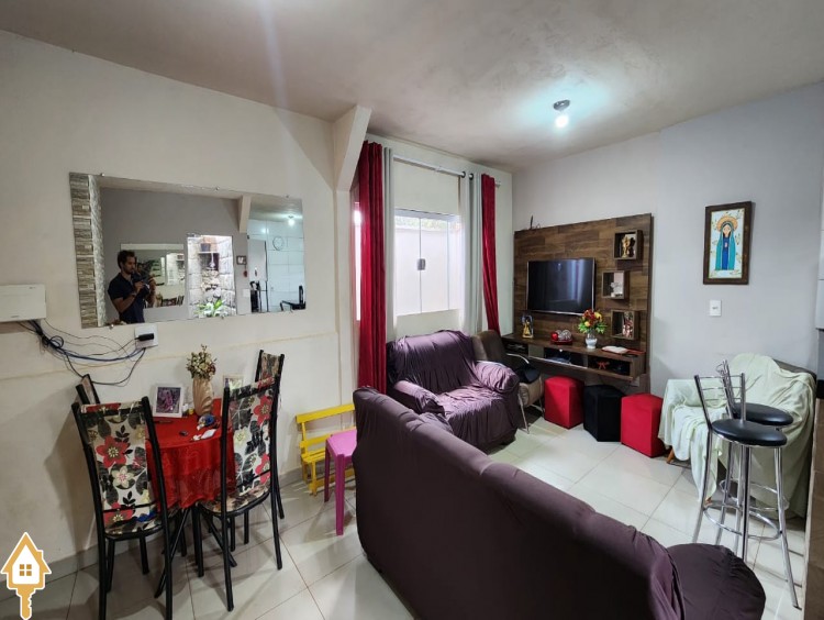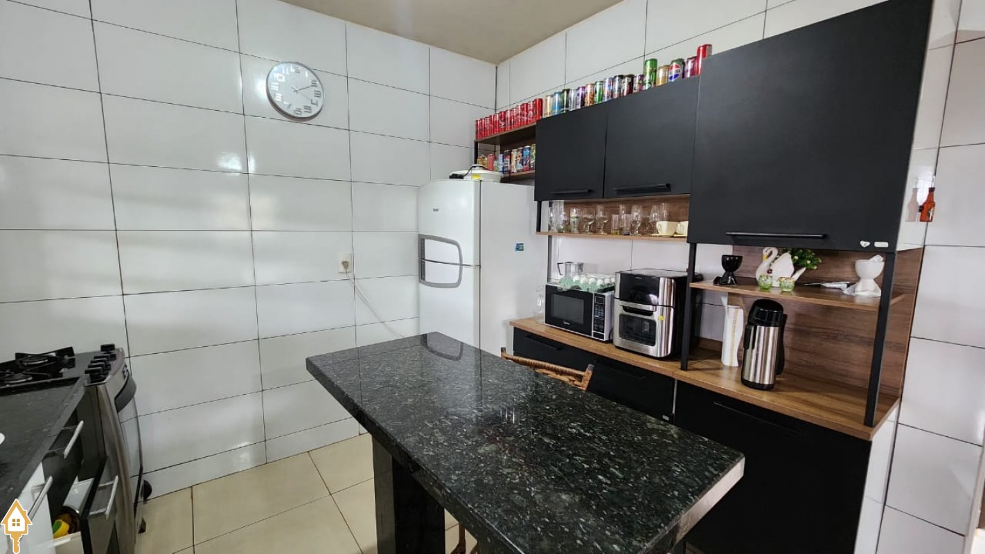 A casa possui 350 m² de área total e 140 m² de construção. Composta por: