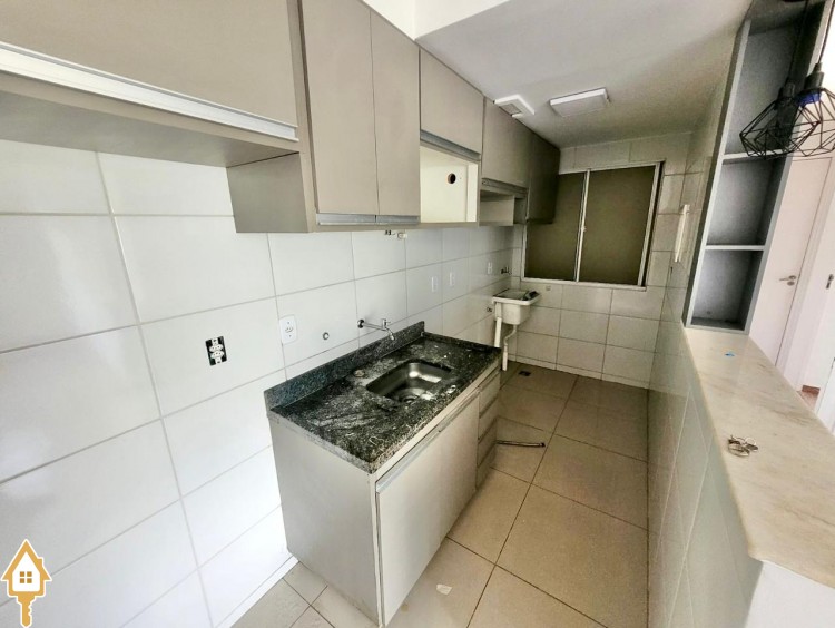 O condomínio oferece lazer com varanda gourmet com churrasqueira, mercado de autoatendimento, playground, bicicletário, salão de festas, elevadores e portaria 24h por R$250,00 mensais.