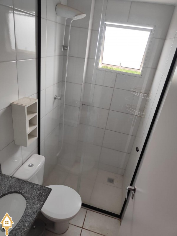 O condomínio oferece lazer com varanda gourmet com churrasqueira, mercado de autoatendimento, playground, bicicletário, salão de festas, elevadores e portaria 24h por R$250,00 mensais.