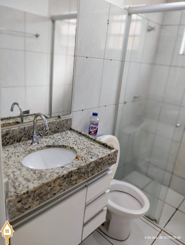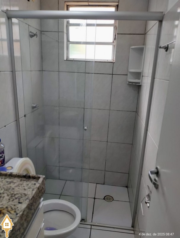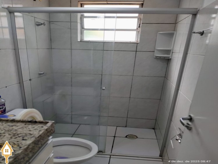 . Banheiro social com armário e box em blindex