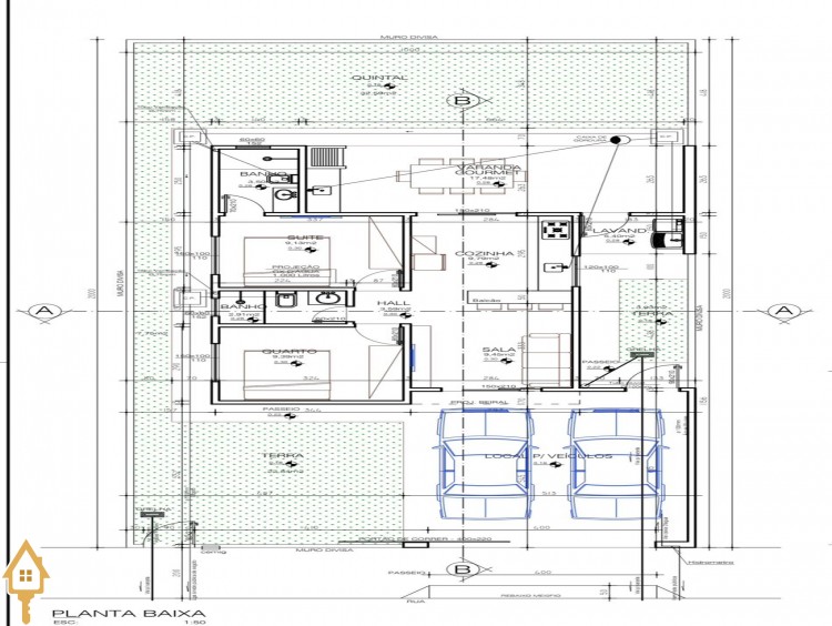Em um terreno de 200 m² (10m x 20m) e área construída de 73 m². Composta por: